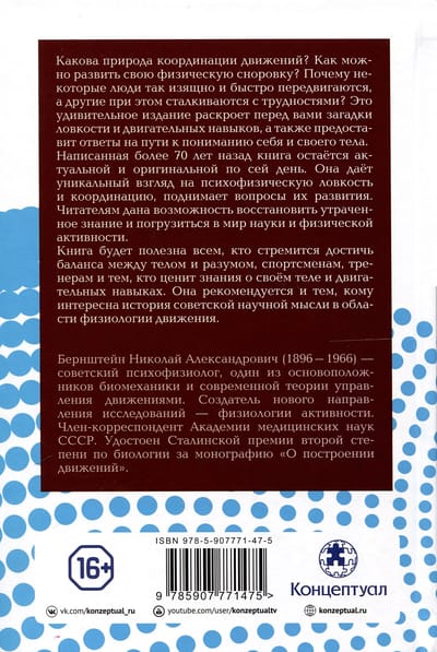 Написанная более 70 лет назад книга остаётся актуальной и оригинальной по сей день. Она даёт уникальный взгляд на психофизическую ловкость и координацию, поднимает вопросы их развития. Читателям дана возможность восстановить утраченное знание и погрузиться в мир науки и физической активности. Книга будет полезна всем, кто стремится достичь баланса между телом и разумом, спортсменам, тренерам и тем, кто ценит знания о своём теле и двигательных навыках. Она рекомендуется и тем, кому интересна история советской научной мысли в области физиологии движения.