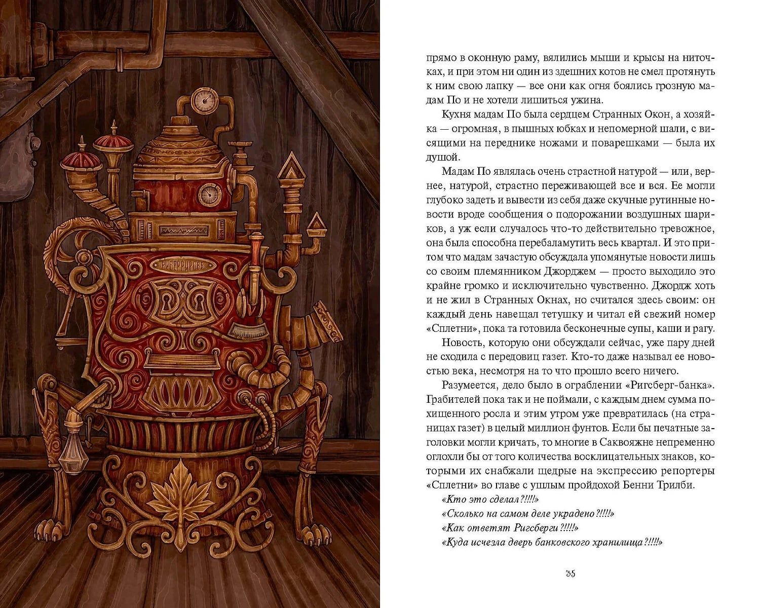 В этой истории вас ждут: тайны, невероятные злодеи, головокружительные приключения, неожиданные повороты сюжета, еще больше забавной мизантропии доктора Доу, иронии Джаспера и интриг мистера Блохха. И кто знает, возможно, у этой истории даже будет счастливый конец.