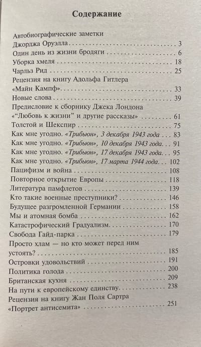 В сборник включены эссе на самые разнообразные темы — от политики и войны до кулинарии и литературы, такие как «Уборка хмеля», «Один день из жизни бродяги», «Новые слова», «Свобода Гайд-парка», «Политика голода», «Кто такие военные преступники?», «Пацифизм и война», ранее не публиковавшееся эссе «Британская кухня» и другие, а также литературные рецензии.
