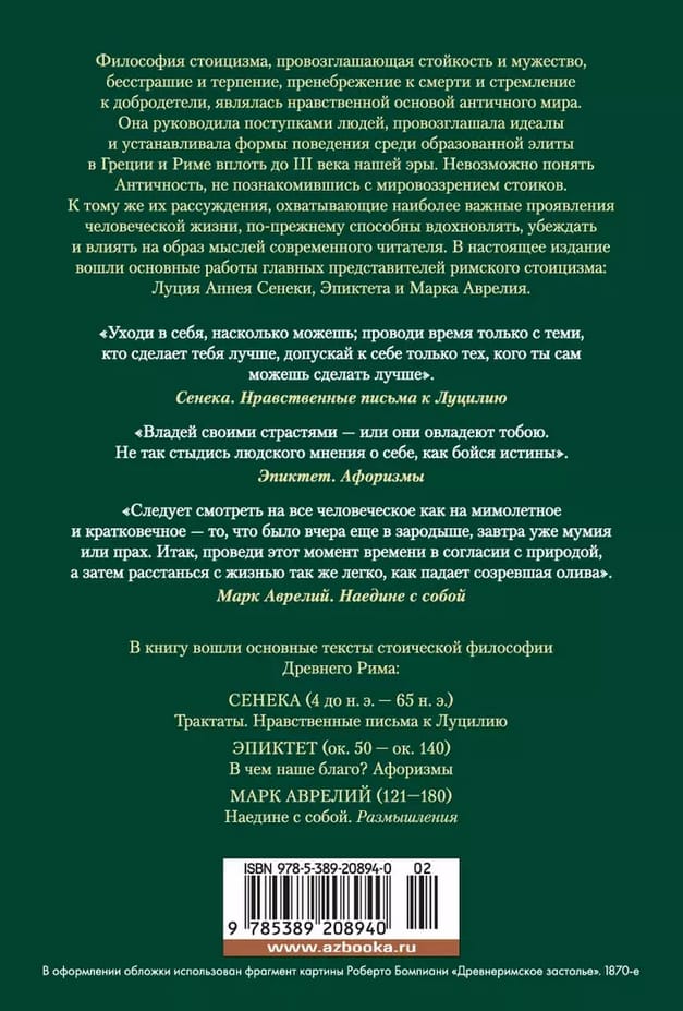В настоящее издание вошли основные работы главных представителей римского стоицизма: Луция Аннея Сенеки, Эпиктета и Марка Аврелия.