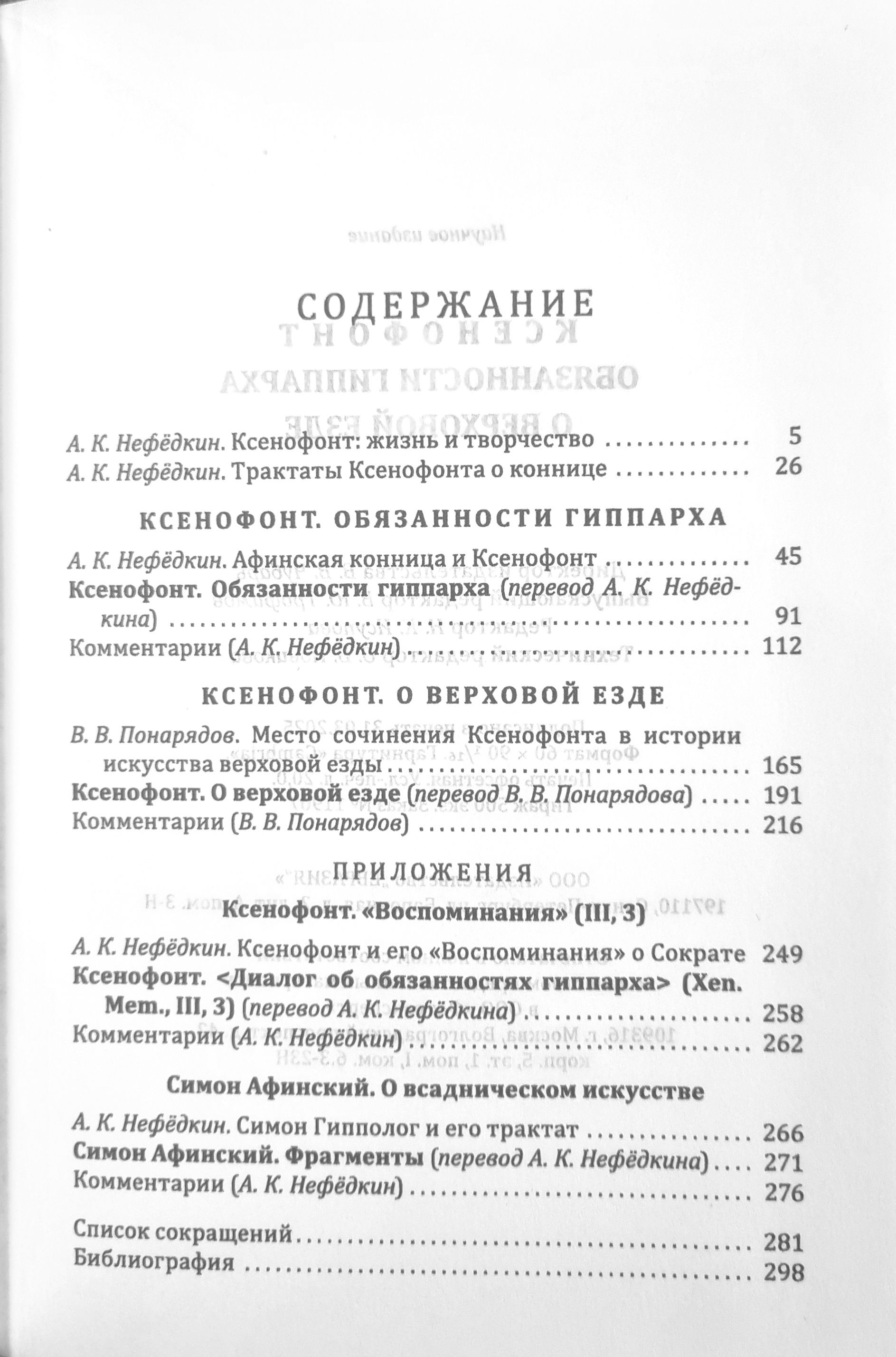 В качестве приложения к книге дается первый перевод на русский язык всех сохранившихся фрагментов афинского автора рубежа V—IV вв. до н. э. Симона Гипполога «О всадническом искусстве» («О верховой езде») — первого, кто написал специальный трактат по данной теме.
