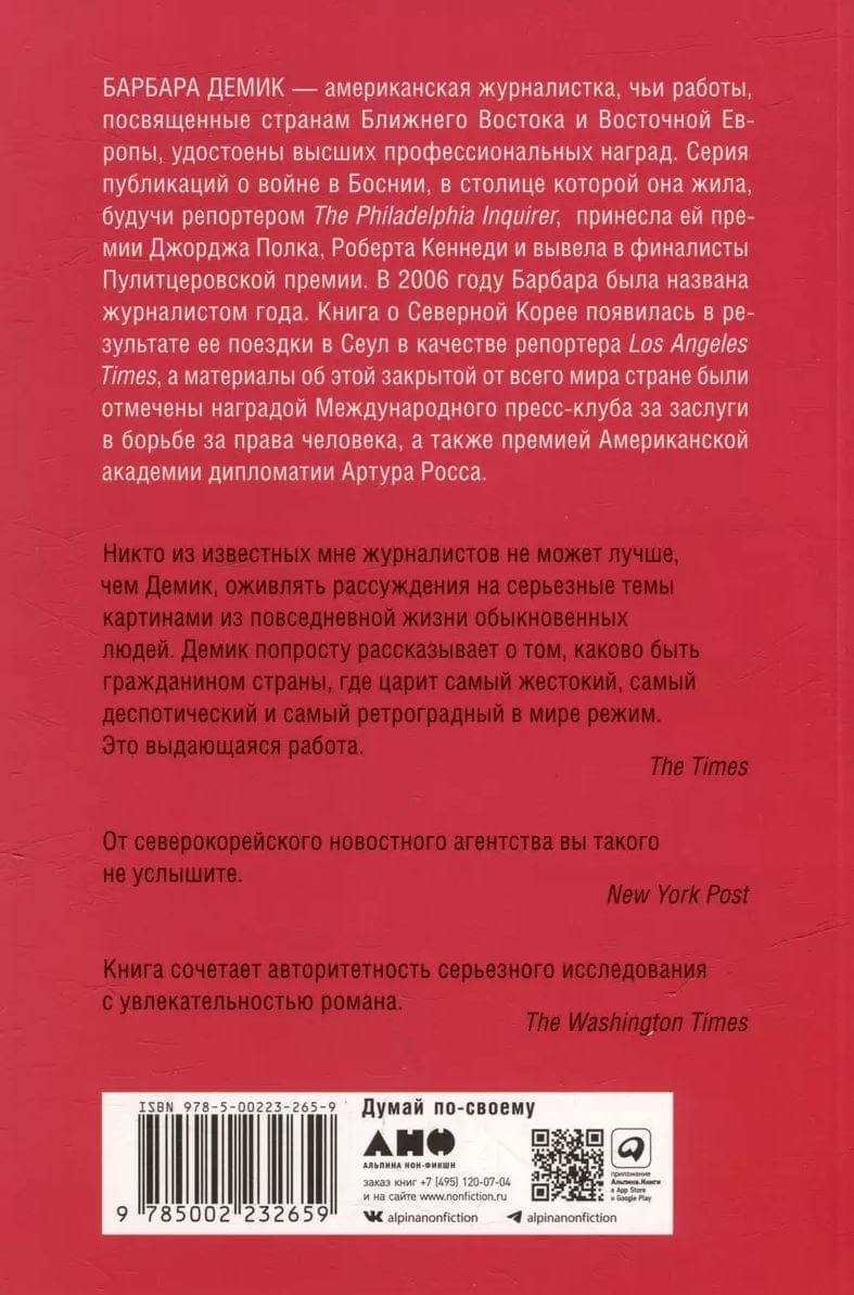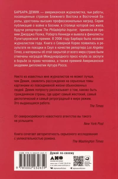 Страшное в своей безыскусности и документальной точности, свободное от излишней патетики, искреннее и динамичное повествование приоткрывает привычную завесу конспиративности, тщательно поддерживаемую спецслужбами КНДР. Достоверность проникновенного рассказа о быте и нравах в КНДР гарантируют рассказы ее бывших жителей, которым удалось сбежать из Страны утренней свежести, а также данные и цифры из самых авторитетных источников.