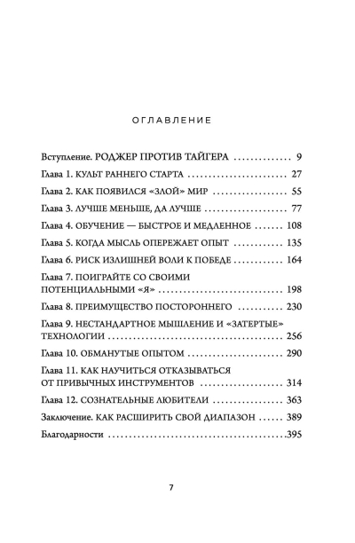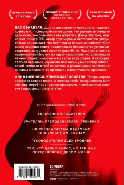 Нас обманули. Долгие десятилетия психологи, педагоги, тренеры и hr-специалисты твердили: чем раньше вы найдете дело жизни, тем больше в нем добъетесь. Дэвид Эпштейн, исследователь, журналист, спикер TED, автор двух мировых бестселлеров, убедительно доказывает, что этот подход больше не работает. Согласно исследованием, подавляющее большинство успешных стартапов запускает не молодежь, а люди старше 45 лет. Чаще остальных в национальные сборные попадают спортсмены, которые относительно поздно начали специализироваться в своем виде спорта. И наоборот, светила медицины, изучавшие всю жизнь узкий спектр заболеваний, загоняют в гроб пациентов. А рекомендации супер-профессиональных финансистов приводят к экономическим кризисам. Мир изменился, утверждает Эпштейн. Теперь широта кругозора важнее опыта, а «период проб», когда человек долгие годы перебирает разные профессии, необходимое условие выдающихся результатов.