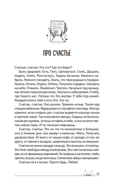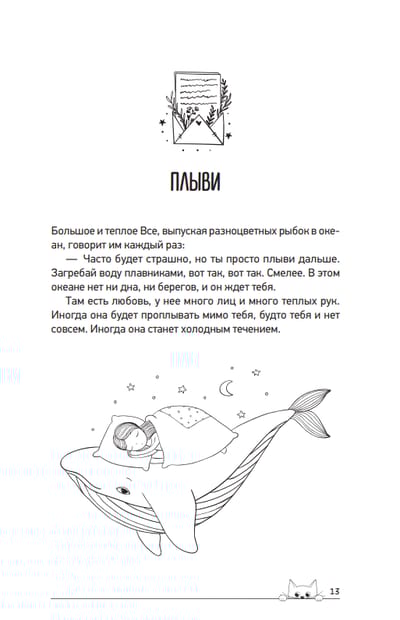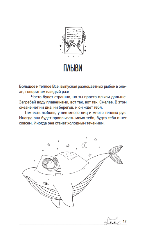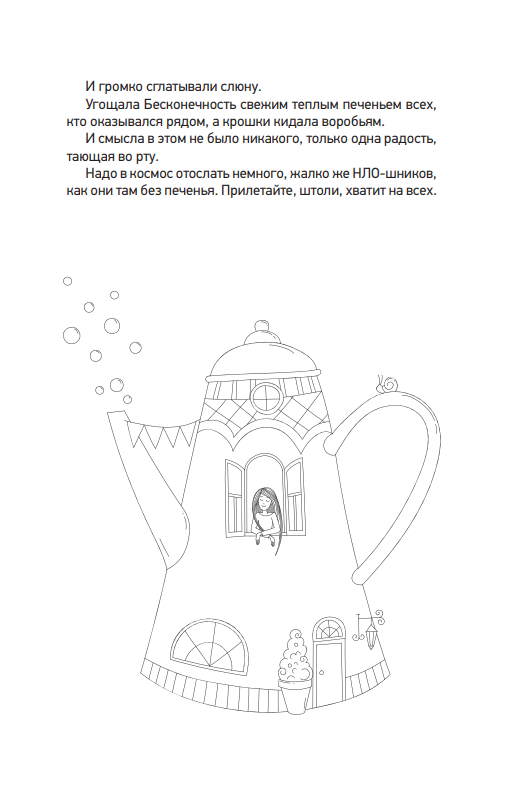 Она как компресс: приложи ее к своей голове, и потихоньку вся боль уйдет. Она как нарядный шарф, длинный-предлинный, теплый-претеплый. Укутайся в него с головой, свей себе уютный кокон, пережди в нем трудные дни. Сиди в коконе, сколько нужно. Помни, что все проходит, заживают шрамы, затихают черные вьюги. Она как шкворчащий оладушек. Подуй на него, макай в мед и наслаждайся. Впереди много вкусного. И очень ЗОЖ-ного, этот оладушек не отложится у тебя на заднице, честное слово. Читай ее не спеша — весь мир точно подождет. А после обязательно выходи из тайного уголка и вставай на свое место. Без тебя в муроздании пусто.
