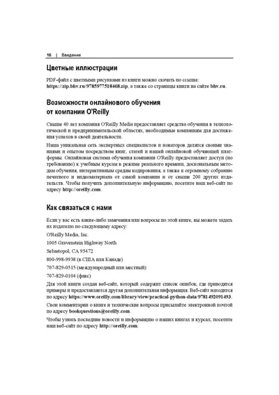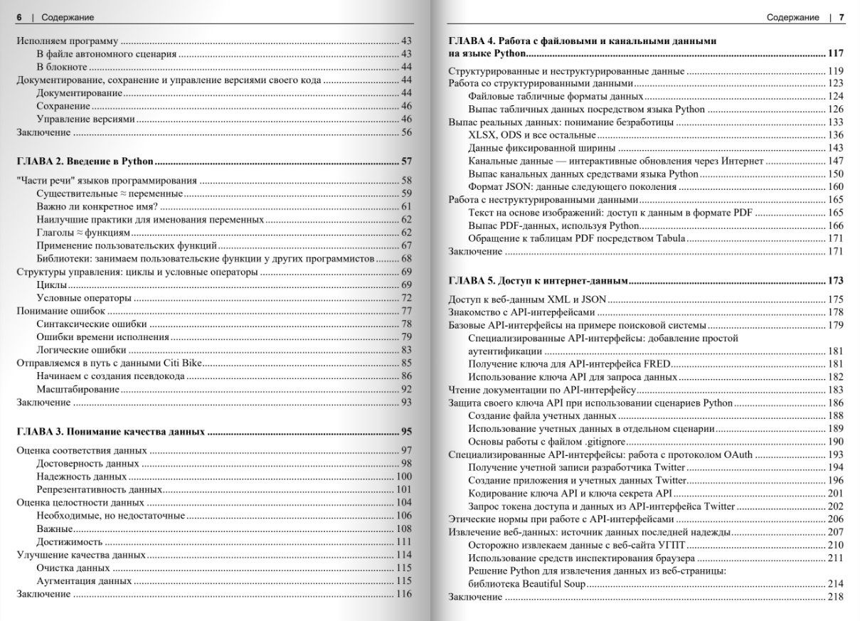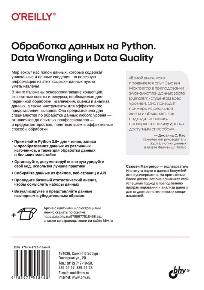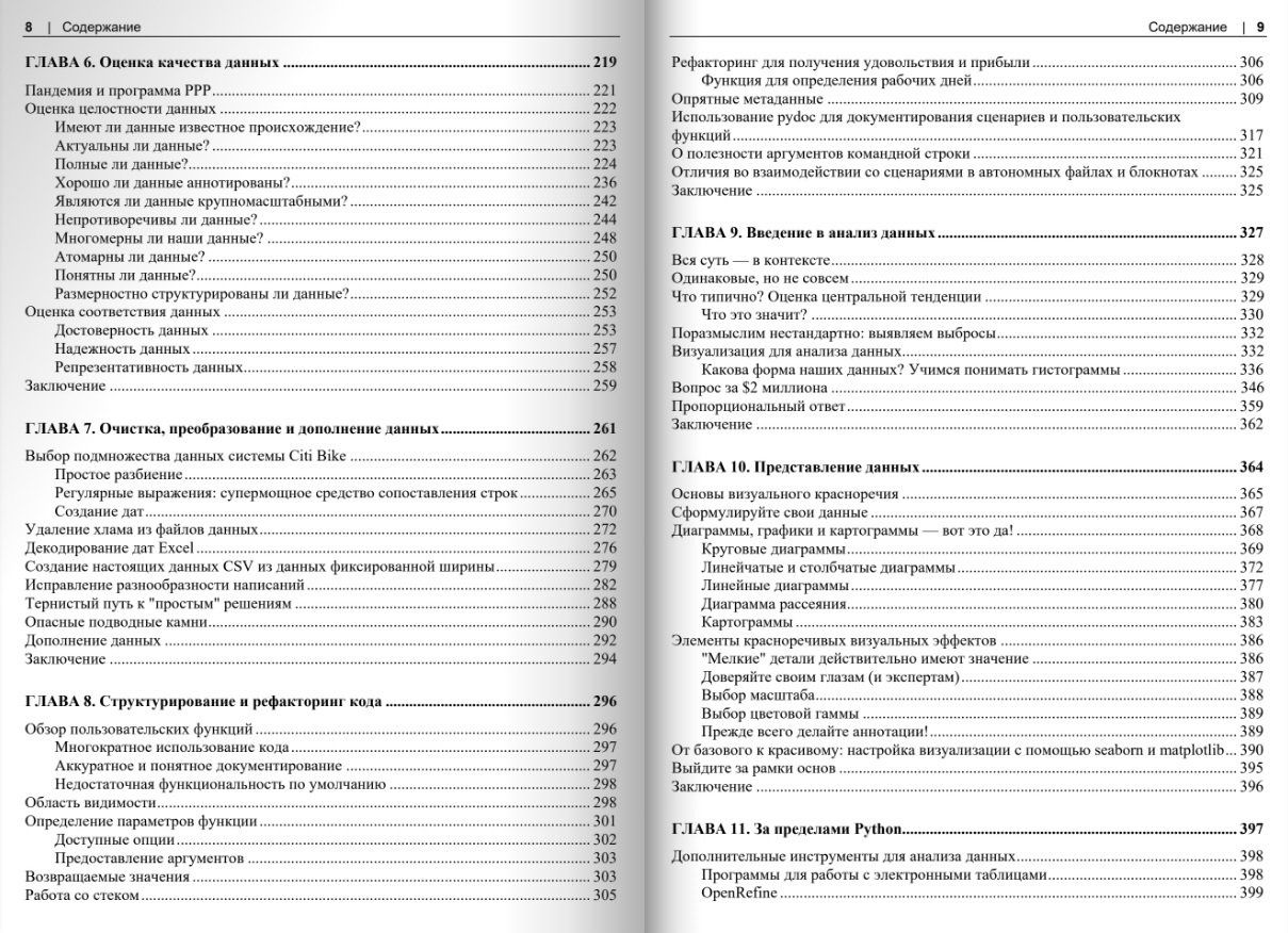 Книга посвящена первичной обработке данных (Data Wrangling) на Python и оценке их качества (Data Quality). Материал содержит основополагающие концепции, экспертные советы и ресурсы, необходимые для первичной обработки, извлечения, оценки и анализа данных. Все темы раскрыты на простых и наглядных примерах из практики. Даны необходимые и достаточные сведения о языке программирования Python 3.8+ для чтения, записи и преобразования данных из различных источников, а также для обработки данных в больших масштабах. Приведены лучшие практики документирования и структурирования кода. Описан сбор данных из файлов, веб-страниц и API. Рассмотрены приемы проведения базового статистического анализа наборов данных, а также наглядные и убедительные способы визуализации и представления данных. Изложение рассчитано как на новичков по обработке данных, так и на профессионалов.