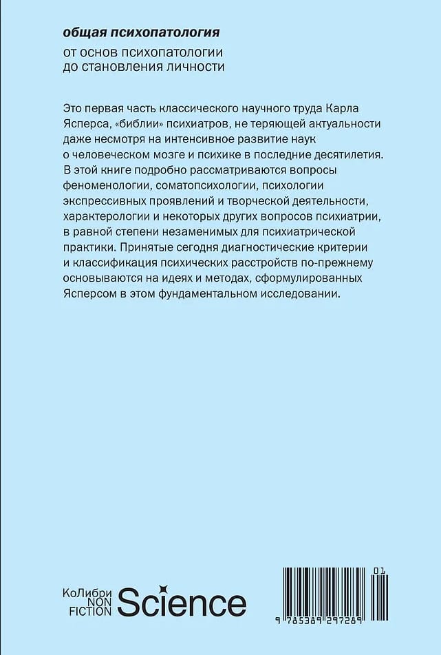 Карл Ясперс (1883–1969) прославился в первую очередь как философ, один из основоположников экзистенциализма, чье влияние отмечали Альбер Камю, Жан-Поль Сартр, Ханна Арендт. Однако Ясперс был не только философом, но и врачом-психиатром, и выросшая из его докторской диссертации «Общая психопатология» — результат нескольких лет работы в психиатрической больнице. Ясперс был глубоко не удовлетворен существовавшими в его время подходами к изучению и лечению душевных болезней, он считал, что эта отрасль медицины находится в глубоком кризисе, и поставил себе амбициозную задачу разработать новые научные основания для психиатрии. Фактически он создал философию психиатрии, разработал новый язык и категориальный аппарат для описания и классификации психических расстройств. Первое издание «Общей психопатологии» вышло в 1913 году, когда Ясперсу было 30 лет; книга стала делом его жизни, при каждом переиздании он перерабатывал и расширял ее — вплоть до 1959 года, когда вышло 7-е издание. Это классика психиатрической литературы, настольная книга психиатров, которая, даже несмотря на интенсивное развитие наук о человеческом мозге и психике в последние десятилетия, остается незаменимой. Принятые сегодня диагностические критерии, как и классификация психических расстройств, по-прежнему основываются на идеях и методах, изложенных в этой работе.