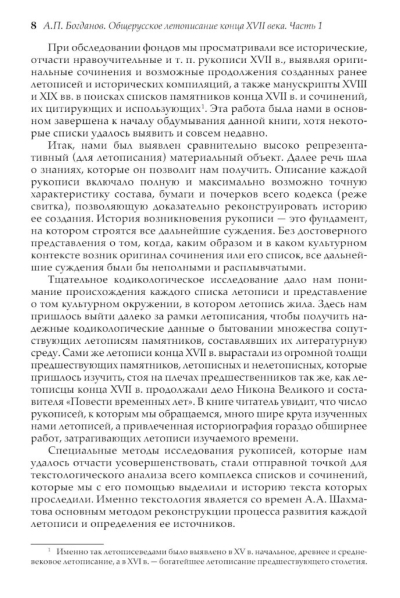 Книга ведущего научного сотрудника Института российской истории РАН А. П. Богданова подводит итог изучения общерусского летописания времен царя Федора Алексеевича, царевны Софьи и молодого Петра I. Рассмотрены продолжавшиеся и созданные в последней четверти XVII — начале XVIII в. общерусские летописные памятники, значительная часть которых была введена вc научный оборот и изучена автором. Показано место этих сочинений во всем летописании начала культурных преобразований в России и связь духовных исканий летописцев с общественной жизнью. Внимание сосредоточено на методах кодикологического, текстологического и источниковедческого анализа рукописной традиции. На большом числе оригинальных, в том числе черновых рукописей раскрыты источники и методы работы летописца, от повременных записей до летописи и свода, охватывающего всю историю Руси и мира. Книга ориентирована на историков-летописеведов, архивистов, специалистов по источниковедению и истории русской культуры.
