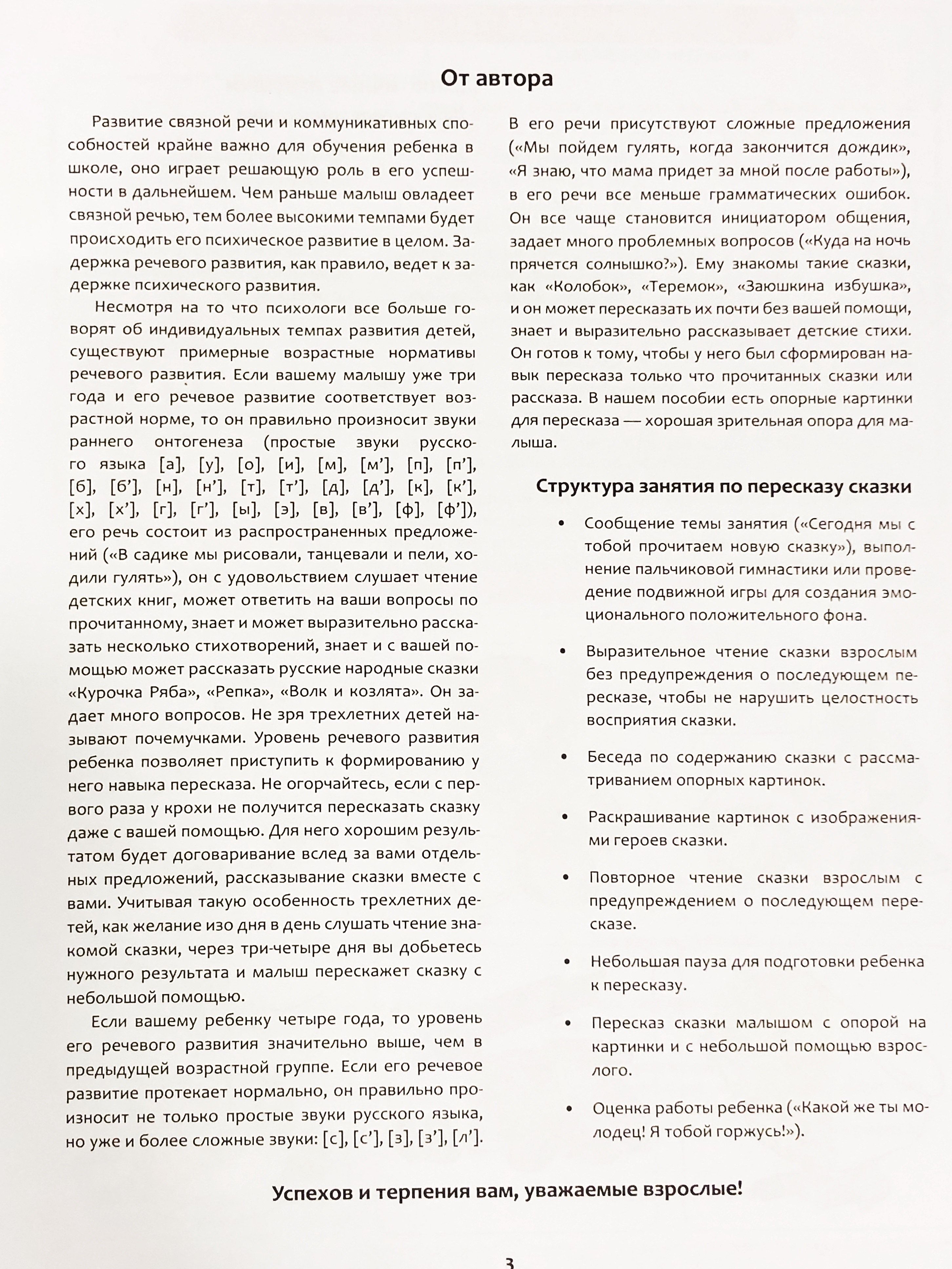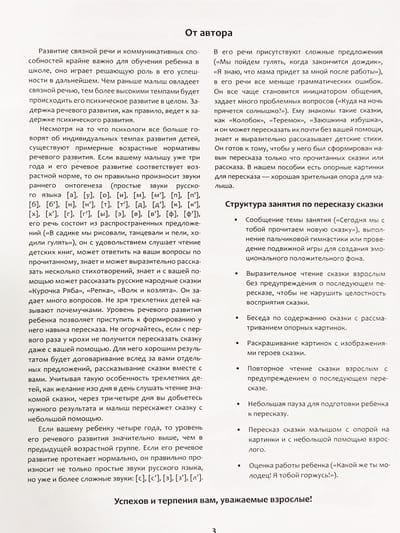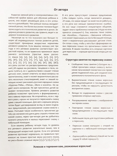 В пособии представлены авторские «Умные сказки для маленьких», имеющие развивающий и поучительный характер, вопросы для организации бесед по ним, подборки опорных картинок для пересказа сказок, тексты для организационных моментов, картинки для раскрашивания. В отличие от первых четырех выпусков, разработанных для детей старшего дошкольного возраста (с 5 до 7 лет), настоящий выпуск разработан для детей младшего (с 3 до 4 лет) и среднего (с 4 до 5 лет) дошкольного возраста. Пособие готовит самых маленьких дошкольников к пересказу, закладывает основы развития связной монологической речи, позволяет делать это в игровой форме, понятной и интересной малышам. .Пособие адресовано учителям-логопедам, педагогам ДОО, учреждений дополнительного образования и родителям дошкольников.