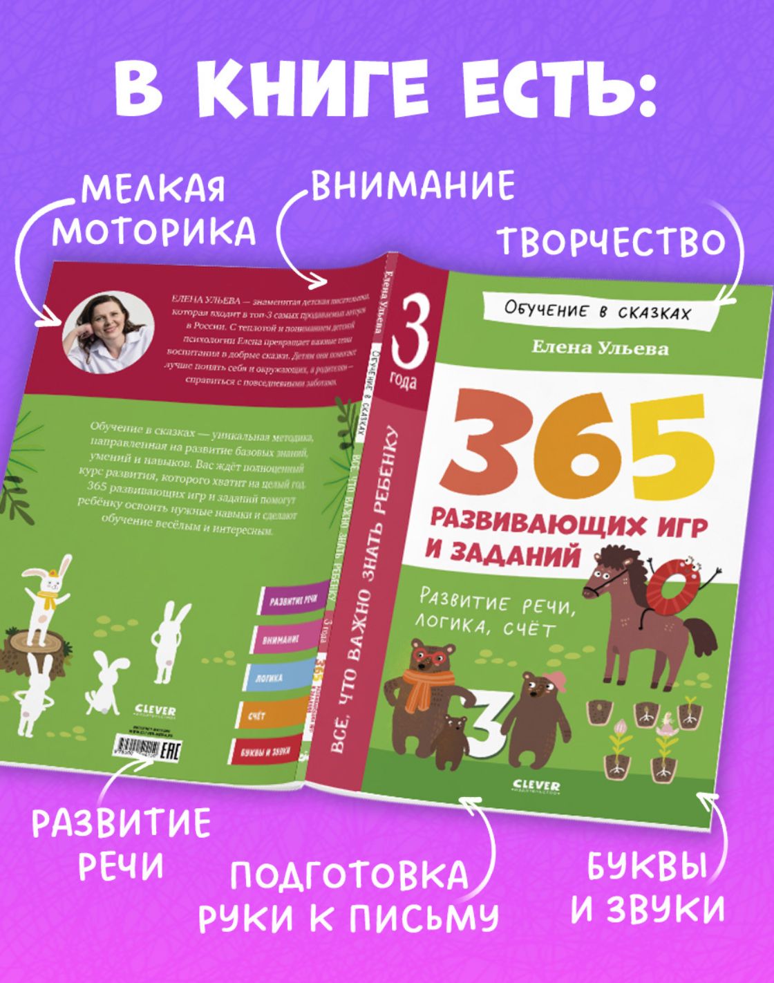 Книга «Все, что важно знать ребенку. 3 года. 365 веселых игр и развивающих заданий на каждый день» — настоящее сокровище для заботливых родителей! Больше не нужно искать развивающие пособия для малыша. Все возможные задания, направленные на всестороннее развитие необходимых знаний, навыков и умений, уже собраны здесь нашим экспертом, опытным педагогом с 20-летним стажем, Еленой Ульевой. Полный комплекс заданий и игр для гармоничного развития ребенка, знакомые с детства сказки и милые герои сделают процесс обучения малыша веселым и полезным.