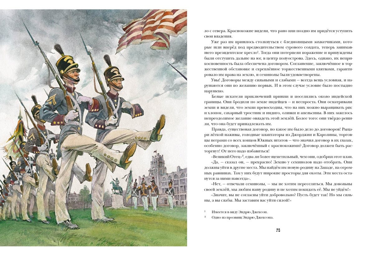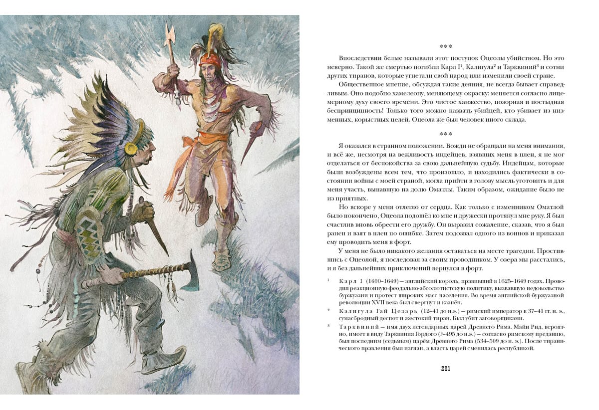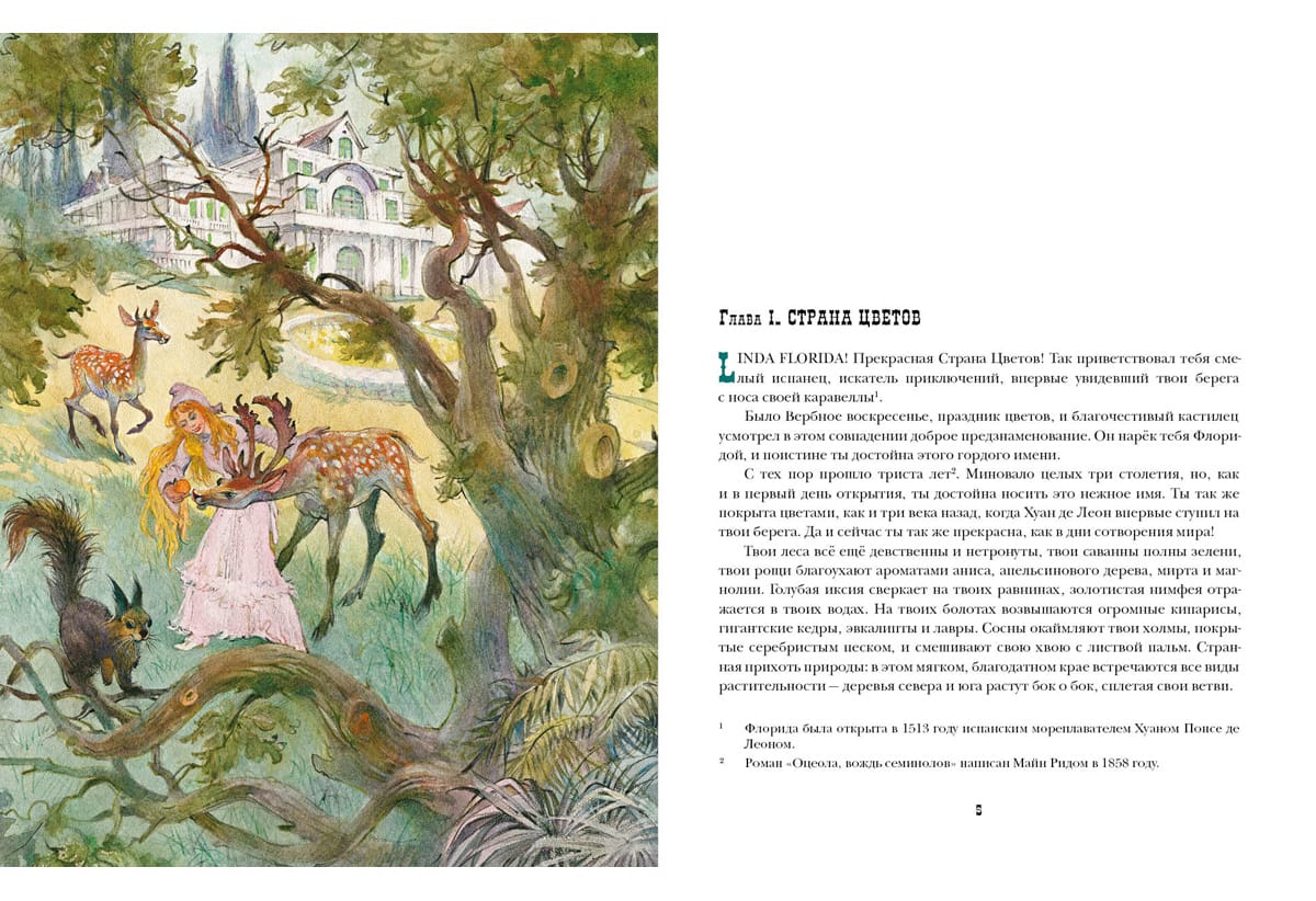 В основу одного из известнейших приключенческих романов Майн Рида легла драматичная история переселения индейских племён, развернувшаяся в тридцатые годы XIX века во Флориде, — история ненависти и жестокости, любви и дружбы. Индейцы под предводительством легендарного вождя Оцеолы вступили тогда с американской армией в отчаянное единоборство не на жизнь, а на смерть.  Главные герои романа — отважный индеец, вождь Оцеола, и молодой плантатор Джордж Рэндольф — по необычному стечению обстоятельств становятся друзьями. Гордый Оцеола будет сражаться за свой народ, за право индейцев жить на своих исконных землях. А Джордж Рэндольф, призванный в американскую армию, сохранит верность дружбе с молодым вождём, несмотря на то что сам вынужден противостоять индейцам… Каждому из молодых людей придётся столкнуться с коварством и предательством, оказаться в смертельной опасности, пережить потерю близких, — но всё же обрести любовь и преданных друзей. Книга проиллюстрирована красочными и колоритными рисунками Юрия Богачёва.