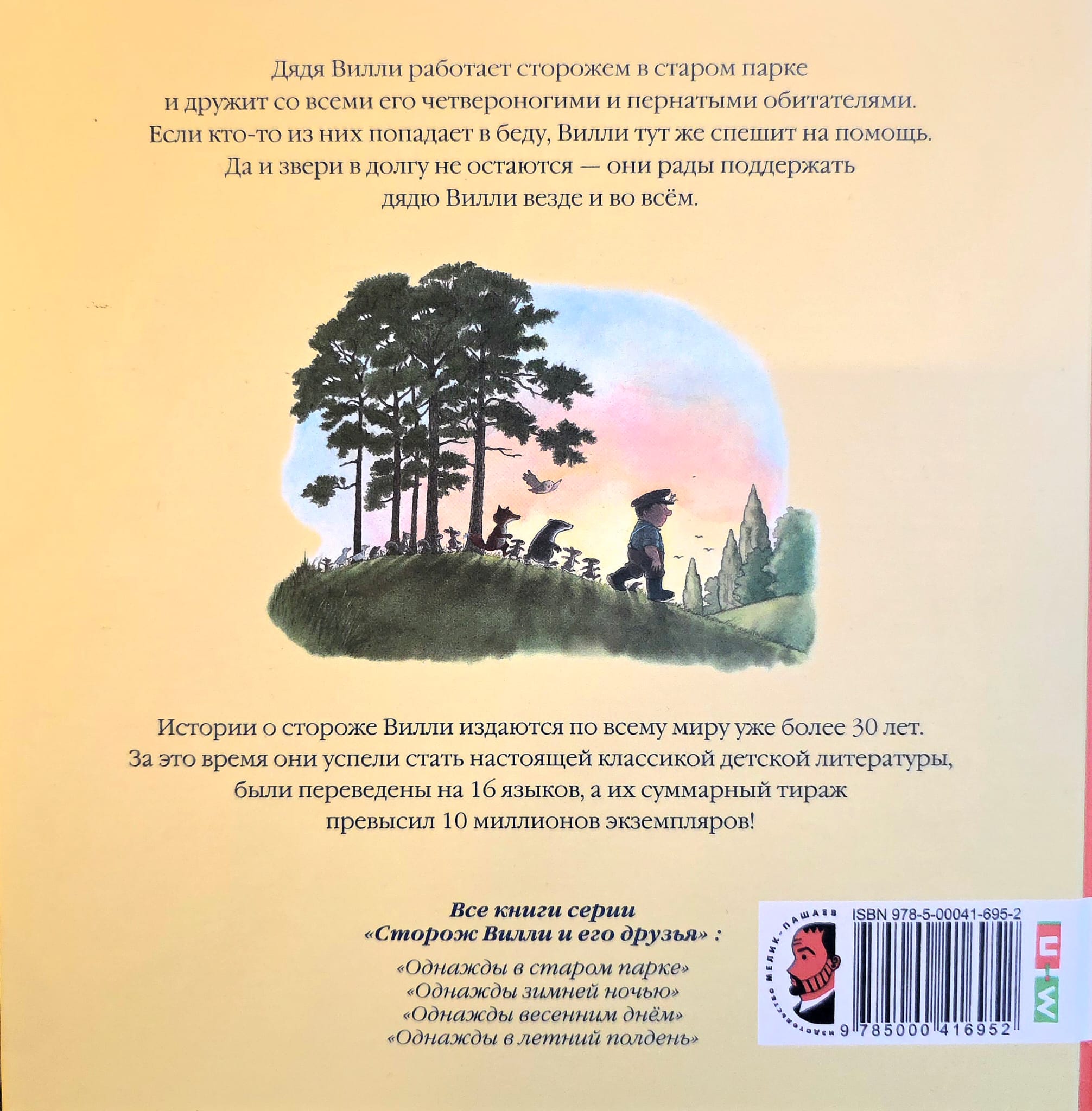 Весёлые и добрые сказочные истории о стороже Вилли и его друзьях созданы в лучших традициях английской детской литературы. Они издаются во всём мире вот уже более 30 лет, и за это время стали классикой детской литературы, были переведены на 16 языков, а их суммарный тираж превысил 10 миллионов экземпляров!