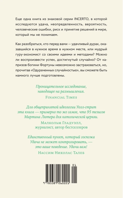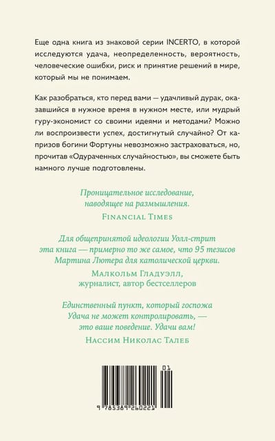 Случайность, удача, шанс, неопределенность, вероятность, человеческие ошибки, риск и принятие решений в мире, который мы не понимаем, — неисчерпаемые в своей многогранности темы, которые исследует успешный трейдер, математик и философ Нассим Талеб, подготавливая нас к достойной встрече лицом к лицу с вызовами и непредвиденными событиями любого рода.