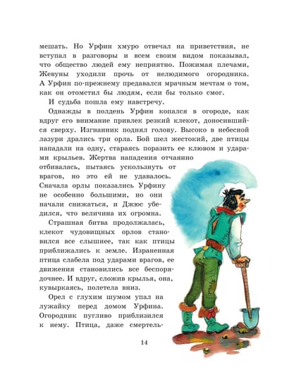 Хитроумный Урфин Джюс, изгнанный из Изумрудного города, спасает гигантского орла Карфакса. Урфин решает использовать огромную птицу для того, чтобы стать повелителем народа Марранов и снова захватить Волшебную страну. Художнику книги Леониду Владимирскому в 2020 году исполняется 100 лет. Автор книги Александр Волков считал его иллюстрации лучшими. Для среднего школьного возраста.