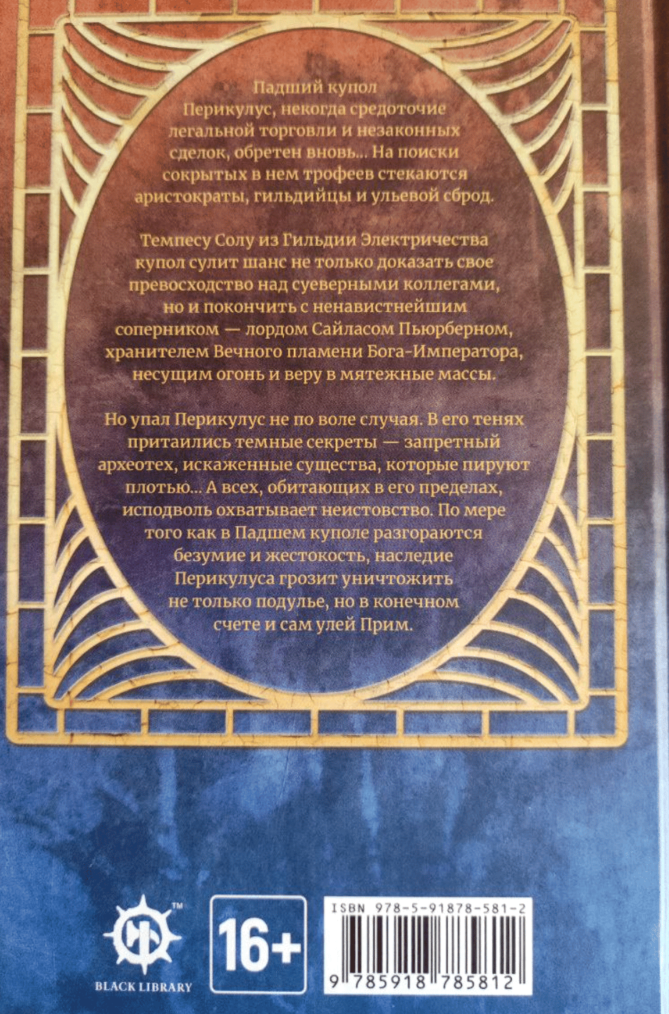 Падший купол Перикулус, некогда средоточие легальной торговли и незаконных сделок, обретен вновь… На поиски сокрытых в нем трофеев стекаются аристократы, гильдийцы и ульевой сброд. Темпесу Солу из Гильдии Электричества купол сулит шанс не только доказать свое превосходство над суеверными коллегами, но и покончить с ненавистнейшим соперником — лордом Сайласом Пьюрберном, хранителем Вечного пламени Бога-Императора, несущим огонь и веру в мятежные массы. Но упал Перикулус не по воле случая. В его тенях притаились темные секреты — запретный археотех, искаженные существа, которые пируют плотью... А всех, обитающих в его пределах, исподволь охватывает неистовство. По мере того как в Падшем куполе разгораются безумие и жестокость, наследие Перикулуса грозит уничтожить не только подулье, но в конечном счете и сам улей Прим.