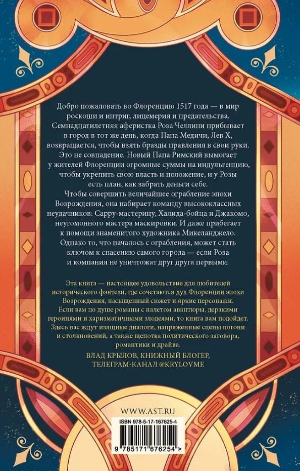 Добро пожаловать во Флоренцию 1517 года — в мир роскоши и интриг, лицемерия и предательства. Семнадцатилетняя аферистка Роза Челлини прибывает в город в тот же день, когда Папа Медичи, Лев X, возвращается, чтобы взять бразды правления в свои руки. Это не совпадение. Новый Папа Римский вымогает у жителей Флоренции огромные суммы на индульгенцию, чтобы укрепить свою власть и положение, и у Розы есть план, как забрать деньги себе.