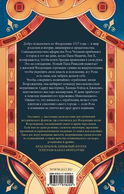 Чтобы совершить величайшее ограбление эпохи Возрождения, она набирает команду высококлассных неудачников: Сарру-мастерицу, Халида-бойца и Джакомо, неугомонного мастера маскировки. И даже прибегает к помощи знаменитого художника Микеланджело. Однако то, что началось с ограбления, может стать ключом к спасению самого города — если Роза и компания не уничтожат друг друга первыми.