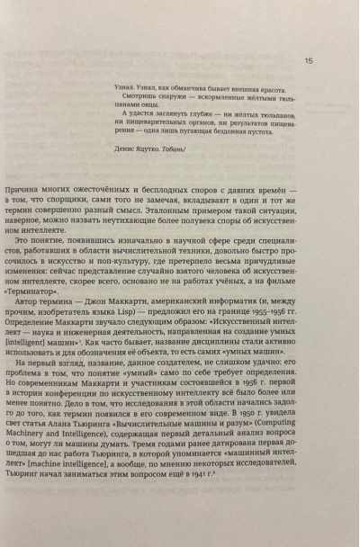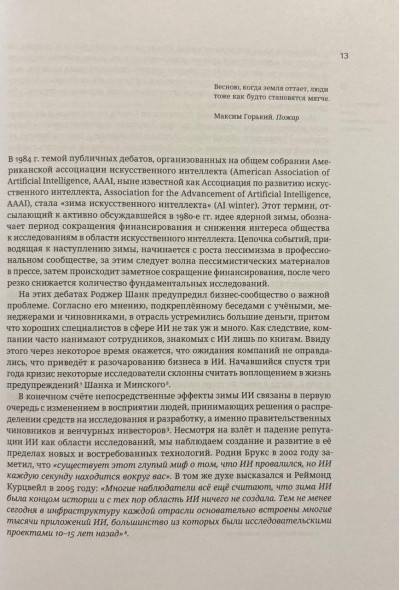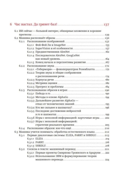 Новый этап в области компьютерных технологий часто называют очередной «весной искусственного интеллекта». Её начало обычно отсчитывают с момента появления нейронной сети, сегодня известной под названием AlexNet, успех которой в распознавании зрительных образов возвестил о начале «революции глубокого обучения». В результате этой революции машинам удалось превзойти человеческий уровень при решении множества задач. Сегодня уже мало кого удивляют победы машин над сильнейшими игроками в го, создание ими музыки и картин, предсказание нейронными сетями пространственной структуры белков и другие вещи, которые десять лет назад мы посчитали бы чудесами. Алгоритмы искусственного интеллекта (ИИ) быстро вошли в нашу жизнь и стали её неотъемлемой частью. Например, каждый раз, когда вы делаете фотографию при помощи смартфона, её обработку выполняет нейронная сеть. На смену весне искусственного интеллекта приходит лето. Эта книга рассказывает о том, какие события в истории науки привели к началу этого лета, о современных технологиях ИИ и их возможностях, а также пытается приоткрыть завесу, скрывающую от нас мир ближайшего будущего.