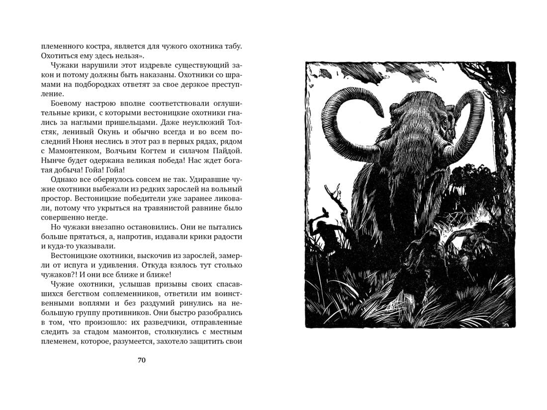 Имя чешского писателя, учителя и историка Эдуарда Шторха широко известно не только на его родине, но и в других странах. Приключенческие романы Шторха, посвященные далекому прошлому человечества, и по сей день вызывают интерес у юных (и не только!) читателей. Шторх неоднократно бывал в археологических экспедициях, принимал участие во многих раскопках — и, чтобы поделиться своими знаниями с молодым поколением, он начал писать книги о жизни первобытных людей. Так на свет появился главный герой самого успешного романа Шторха «Охотники на мамонтов» (1918) — мальчик Копчем, живущий 20–30 тысяч лет тому назад где-то в нынешней Южной Моравии. Копчем, как и все его сородичи, занимается собирательством, рыбной ловлей и охотой, а в свободное время резвится с такими же мальчишками, как он сам, наслаждаясь солнцем и воздухом. Под руководством сильного вожака соплеменники Копчема кочуют, выбирая для стоянок более безопасные и сытные места. Каждому в племени отводится своя роль: мужчины охотятся, кормят женщин и детей, а те ведут хозяйство, шьют одежду из шкур и дежурят у очага. Первобытных людей всюду подстерегает опасность: они гибнут от лап хищников, болеют, сражаются с соседями, иногда голодают, мерзнут. При этом каждый их день наполнен удивительными для современного человека встречами с дикими животными и стихией… Роман с иллюстрациями замечательного чешского художника Зденека Буриана публикуется на русском впервые в полном переводе!