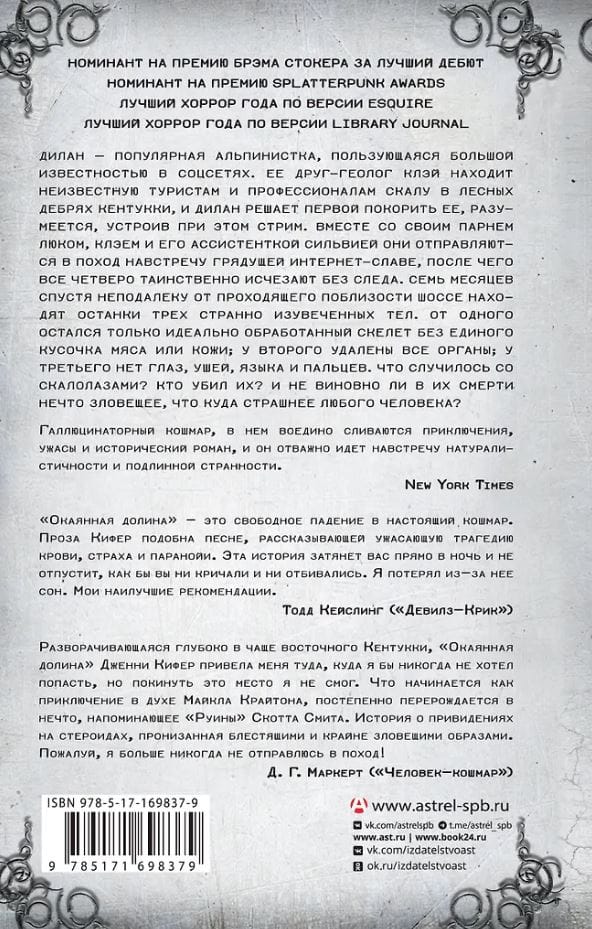 Дилан — популярная альпинистка, пользующаяся большой известностью в соцсетях. Ее друг-геолог Клэй находит неизвестную туристам и профессионалам скалу в лесных дебрях Кентукки, и Дилан решает первой покорить ее, разумеется, устроив при этом стрим. Вместе со своим парнем Люком, Клэем и его ассистенткой Сильвией они отправляются в поход навстречу грядущей Интернет-славе, после чего все четверо таинственно исчезают без следа. Семь месяцев спустя неподалеку от проходящего поблизости шоссе находят останки трех странно изувеченных тел. От одного остался только идеально обработанный скелет без единого кусочка мяса или кожи; у второго удалены все органы; у третьего нет глаз, ушей, языка и пальцев. Что случилось со скалолазами? Кто убил их? И не виновно ли в их смерти нечто зловещее, что куда страшнее любого человека?