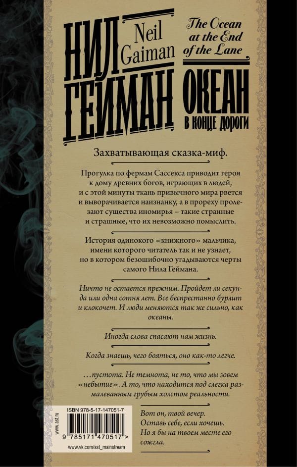От создателя знаменитых «Американских богов», «Никогде» и «Звезд ной пыли». Захватывающая сказка миф, блестяще рассказанная история одинокого «книжного» мальчика, имени которого читатель так и не узнает, в котором безошибочно угадываются черты самого автора. Прогулка по фермам Сассекса приводит героя к дому древних богов, играющих в людей, и с этой минуты ткань привычного мира рвется и выворачивается наизнанку, а в прореху проникают существа иномирья — такие странные и страшные, что о них невозможно и помыслить.