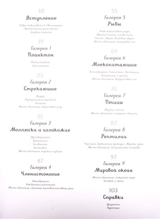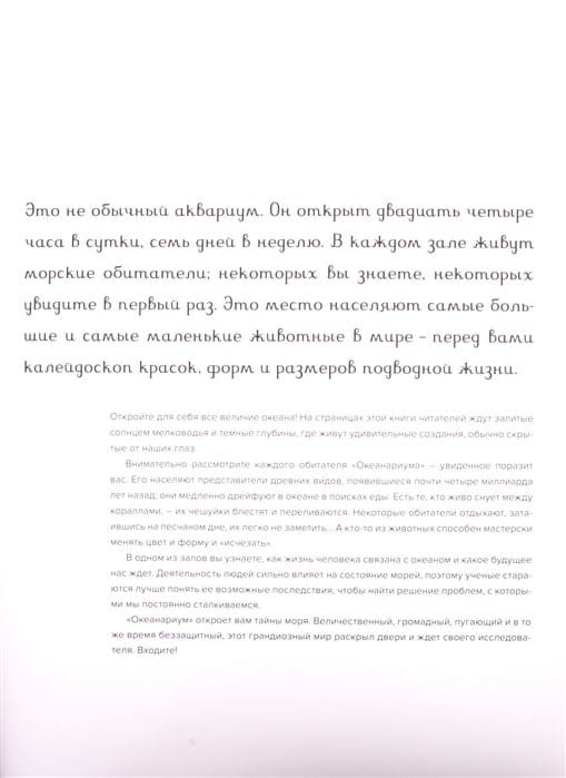 Добро пожаловать в наш «Океанариум»! Этот постоянно открытый музей приглашает посетителей в путешествие по Мировому океану – уникальной экосистеме, наполненной всевозможными формами жизни. Вы увидите множество морских обитателей – от микроскопического планктона и разноцветных медуз до удивительных глубоководных рыб и огромных китов. Океан – невероятная тайна, которую нам ещё только предстоит раскрыть. Заходите в наш музей и познакомьтесь с потрясающим подводным миром.