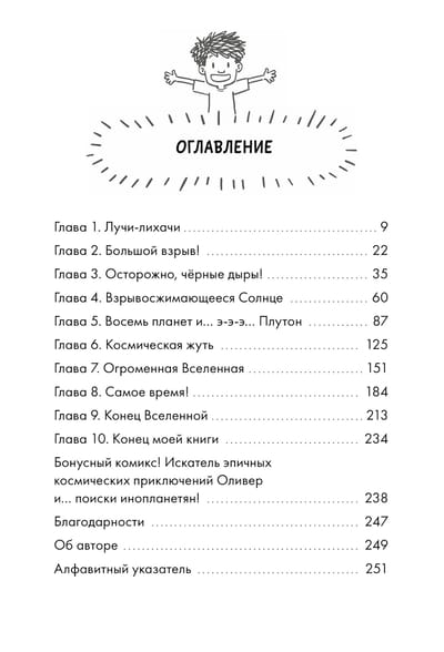 Познавательный комикс о мальчике Оливере, который мечтает стать астрофизиком и делится интересными фактами о Вселенной. Забавные аналогии из жизни, отсутствие взрослых умозаключений и обилие иллюстраций — все это заинтересует юных любителей науки.