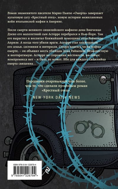 Time Настоящий мастер повествования. USA Today Своеобразная версия войны Алой и Белой розы в мире современной организованной преступности. Booklist В этой завораживающей истории писатель остался верен себе, наблюдая игры человеческие во всем их безумии.  Publishers Weekly Текст на задний клапан суперобложки [Фото автора] Роман знаменитого писателя Марио Пьюзо "Омерта" завершает культовую сагу "Крестный отец", новую историю межклановых войн итальянской мафии в Америке. После смерти великого сицилийского мафиозо дона Винченцо Дзено, его малолетний сын Асторре перебрался в Нью-Йорк. Там его вырастил и воспитал ближайший помощник отца, Раймонде Априле. А когда того убили враги, Асторре стал защитником его семьи, состояния и интересов. Следуя кодексу чести мафии – омерте, – он объявил месть убийцам дона Раймонде, безжалостную и неотвратимую. Асторре – не сторонник жестокости, но сейчас компромисса нет – и быть не может. Ибо для каждого сицилийца омерта священна…