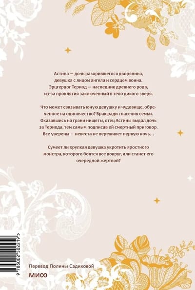 Что может связывать юную девушку и чудовище, обреченное на одиночество? Брак ради спасения семьи. Оказавшись на грани нищеты, отец Астины выдал дочь за Териода, тем самым подписав ей смертный приговор. Все уверены — невеста не переживет первую ночь…