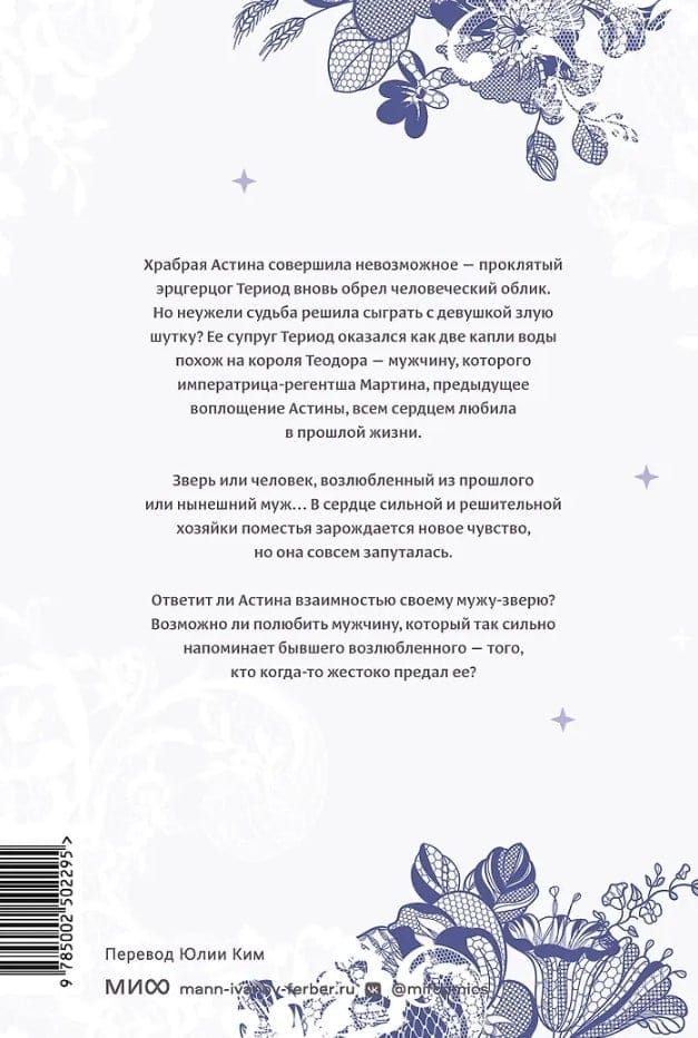 Храбрая Астина совершила невозможное — проклятый эрцгерцог Териод вновь обрел человеческий облик. Но неужели судьба решила сыграть с девушкой злую шутку? Ее супруг Териод оказался как две капли воды похож на короля Теодора — мужчину, которого императрица-регентша Мартина, предыдущее воплощение Астины, всем сердцем любила в прошлой жизни.