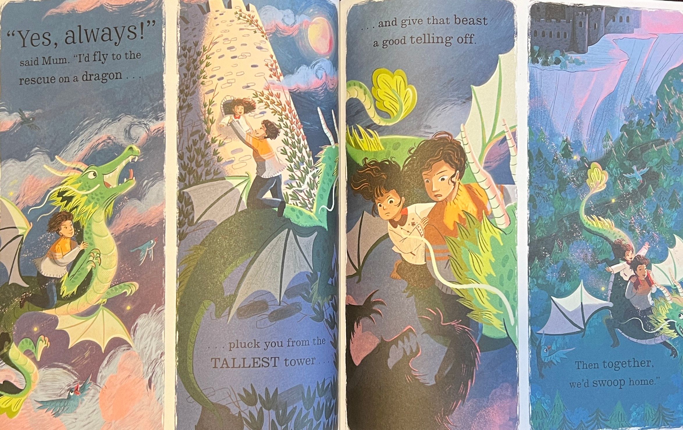 But what if, Nia asks, she gets kidnapped by a wicked witch? Or locked up by a terrible beast in a tower? Or stuck at the top of a beanstalk with a grouchy giant? Would Mum come and rescue her?
