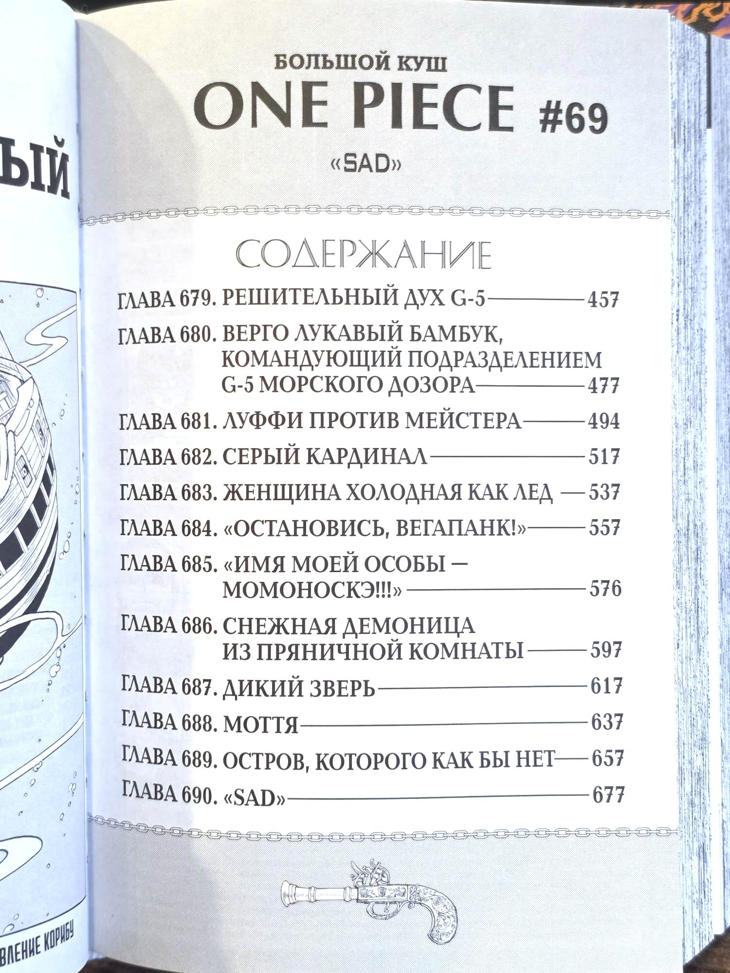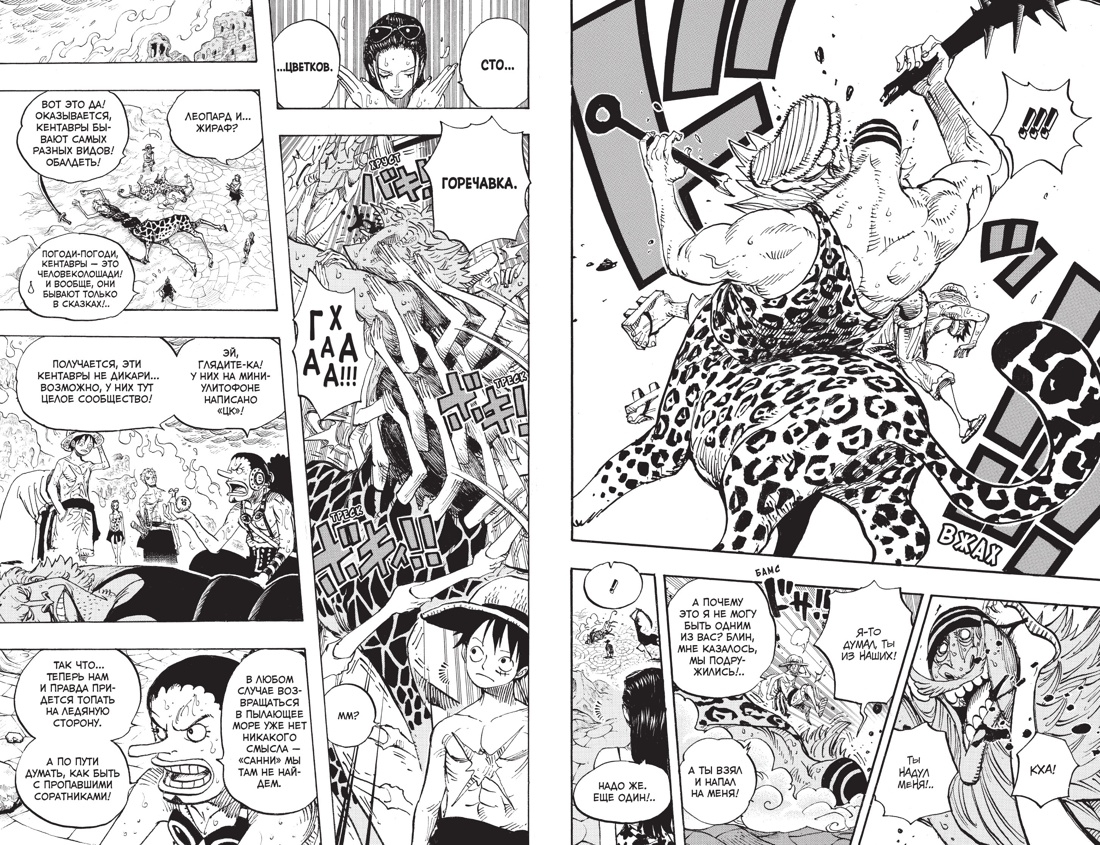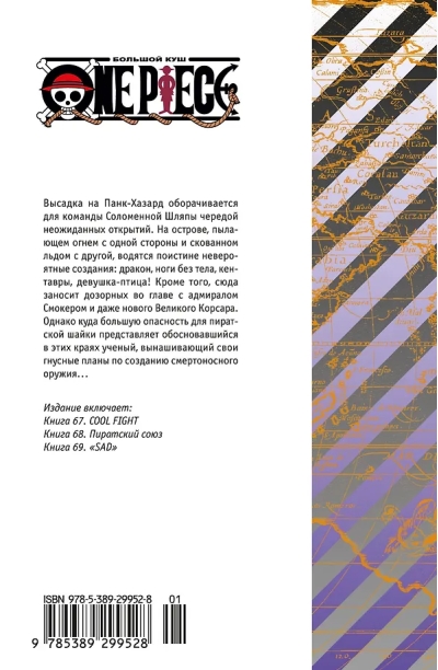 Высадка на Панк-Хазард оборачивается для команды Соломенной Шляпы чередой неожиданных открытий. На острове, пылающем огнем с одной стороны и скованном льдом с другой, водятся поистине невероятные создания: дракон, ноги без тела, кентавры, девушка-птица! Кроме того, сюда заносит дозорных во главе с адмиралом Смокером и даже нового Великого Корсара. Однако куда большую опасность для пиратской шайки представляет обосновавшийся в этих краях ученый, вынашивающий свои гнусные планы по созданию смертоносного оружия...