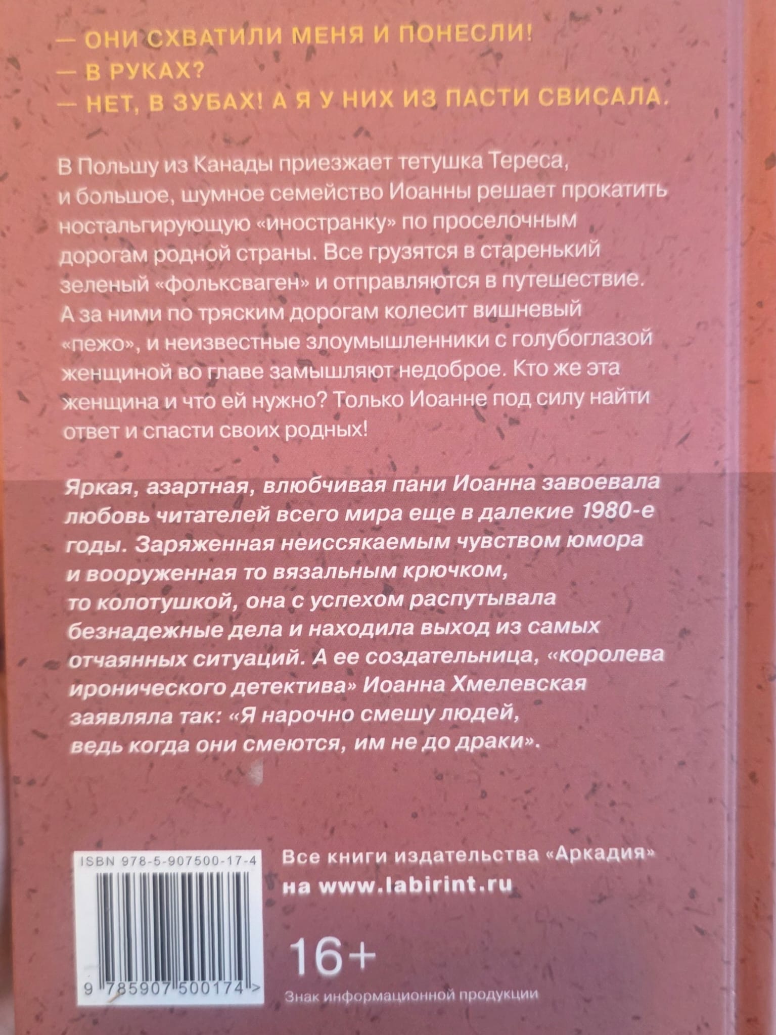 Что такое, по-вашему, приятное путешествие? Уж, наверное, не поездка в разбитой колымаге вместе с мамулей, говорливыми тетушками, совершенно глухим отцом и кучей баулов в багажнике! Но для пани Иоанны и ее многочисленной родни это - лучшее времяпрепровождение. Вот только путешественников упорно преследуют неизвестные, норовя похитить то вещи стариков, то их самих. Иоанне и блондину ее мечты приходится изрядно потрудиться, выручая бедняг из беды и пытаясь распутать сгустившуюся вокруг них тайну давно минувших дней…
