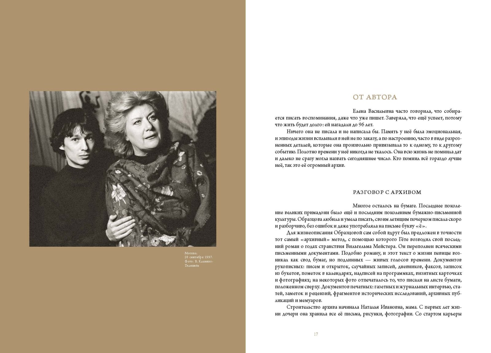 Весь свой огромный архив Елена Васильевна Образцова передала в созданный ею Фонд Елены Образцовой. Фонд вместе с издательством «Бослен» решил обнародовать это сокровище, издав документальную биографию величайшей российской оперной певицы. Итогом долгой работы по изучению архива и стала книга Михаила Пащенко. В истории удивительной жизни, карьеры и творчества Е. В. Образцовой, изложенной подробнейшим образом, — выдержки из дневников и писем, из труднодоступной давней прессы разных стран, из документов государственных архивов, из интервью друзей и коллег. Публикуются около 700 архивных фотографий, впервые раскрываются многие детали непростого творческого пути Е. В. Образцовой, связанных с ней событий из истории Большого театра и мировой оперы. Проанализированы «феномен Образцовой», секрет её всемирного успеха, приведены и восторженные, и резко критические оценки её творчества, дан очерк репертуара и гастрольных маршрутов. Неизбывный оптимизм главной героини, её безудержная положительная энергия непременно захватят читателя.