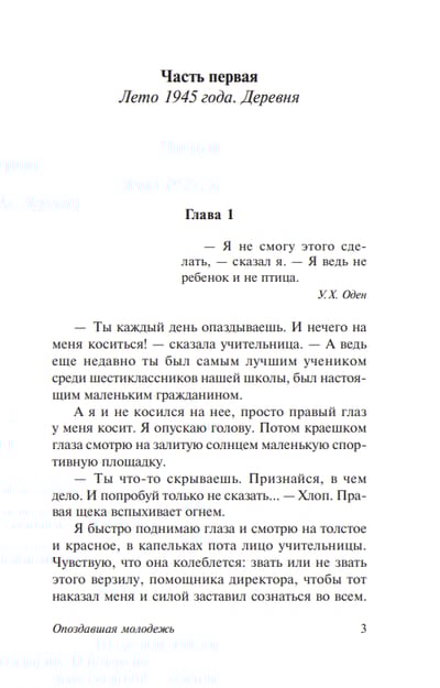 И теперь поколению, которое опоздало умереть, предстоит научиться жить с чувством стыда от невыполненного долга перед родиной, искать собственный путь в мире, где нравственные ориентиры размылись, а прежние идеалы канули в Лету. Но как избежать полного краха надежд, если окружающими правят безразличие, безответственность и нигилизм?