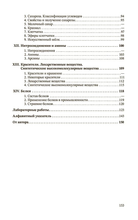 Авторы дают ясное представление о многообразии органических соединений, о неразрывной связи между неорганическими веществами и веществами живой природы; детально разъясняют химические свойства молекул углерода и специфические особенности его соединений. Учебник содержит в себе также раздел с подробно описанными лабораторными работами. Практические опыты подобраны тематически по главам, что способствует более качественной систематизации основных понятий изучаемого курса.
