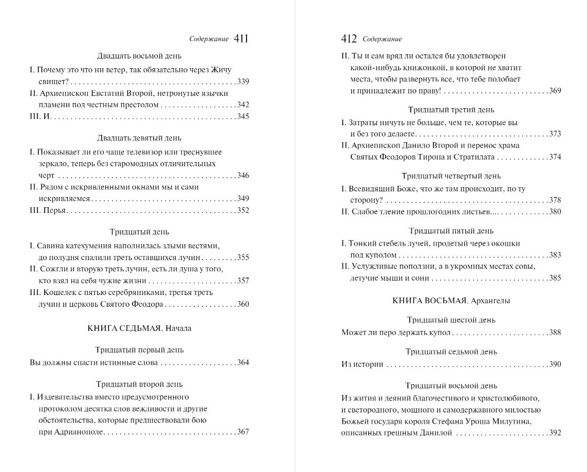 Повествование растекается по всей истории Европы: коварство легендарного слепца, венецианского дожа Дандоло, захват крестоносцами Константинополя, судьба двух сербских королей Драгутина и Милутина.