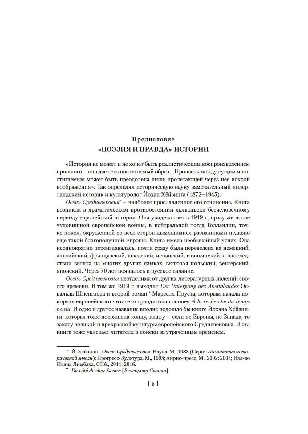 Сборник включает наиболее значительные произведения выдающегося нидерландского историка и культуролога Йохана Хёйзинги (1872–1945). «Осень Средневековья» — поэтическое описание социокультурного феномена позднего Средневековья, яркая, насыщенная энциклопедия жизни, искусства, культуры Бургундии XIV–XV вв. «Homo ludens» — фундаментальное исследование игрового характера культуры, провозглашающее универсальность феномена игры. В «Тенях завтрашнего дня» (1935) глубоко анализируются причины и следствия духовного обнищания европейской цивилизации в преддверии Второй мировой войны; этот очерк называли ключом к творчеству и к личности Йохана Хёйзинги. Доклад «Человек и культура», подготовленный для выступления в Австрии в мае 1938 г. и не прочитанный из-за вступления туда в марте немецких войск, провозглашает нерасторжимость личности и культуры и представляет несомненную ценность как выразительное и лаконичное изложение взглядов Хёйзинги на суть обозначенной им проблемы.