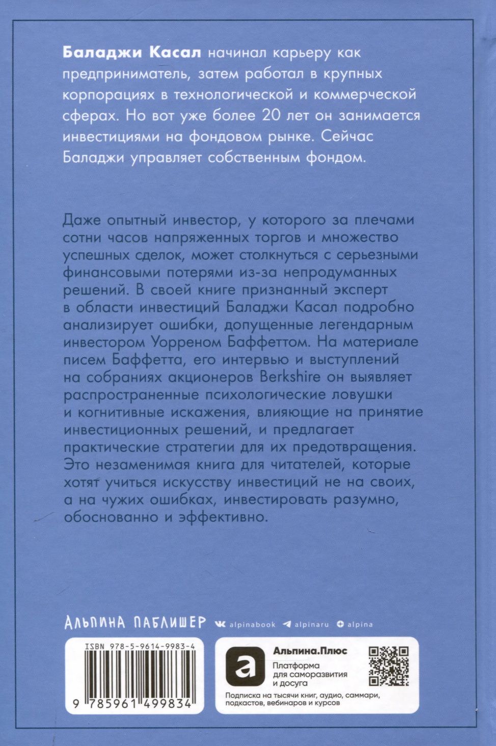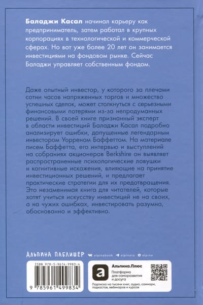 На материале писем Баффетта, его интервью и выступлений на собраниях акционеров Berkshire он выявляет распространенные психологические ловушки и когнитивные искажения, влияющие на принятие инвестиционных решений, и предлагает практические стратегии для их предотвращения.