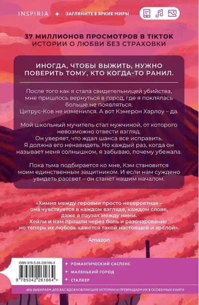 Маленький город, большая опасность — и любовь, горячая, как полуденное солнце над виноградниками. Хейли бежит от прошлого и от убийцы, который идет по ее следу. Единственное место, где можно скрыться — Цитрус-Ков. Город, где Кэмерон когда-то сделал ее своей мишенью. Но теперь он не жестокий мальчишка из прошлого, а мужчина, от одного взгляда которого перехватывает дыхание.