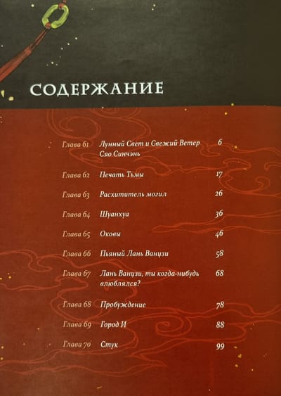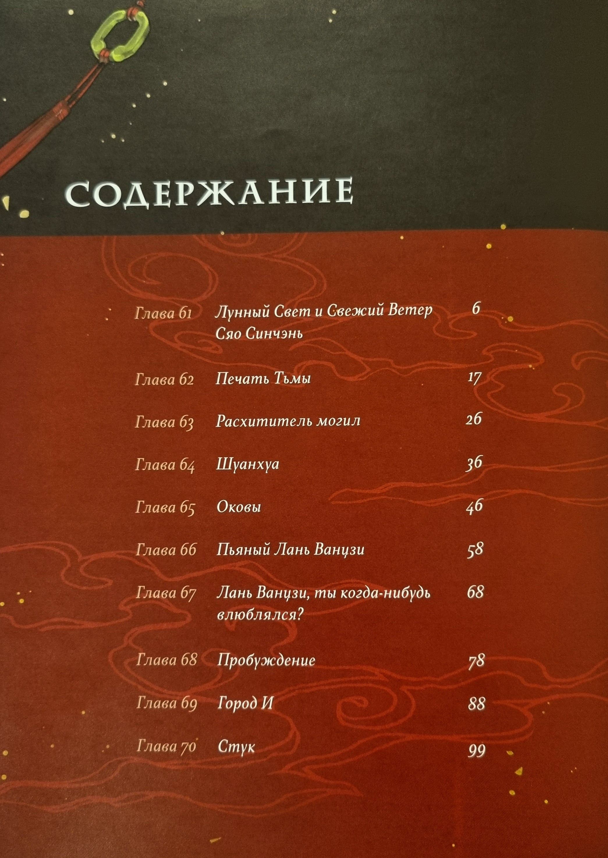 Случись что в мире совершенствующихся — все тут же бросаются наперебой обвинять Старейшину Илина. Казалось бы, столько людей замешаны в страшной трагедии клана Чан... а зачинщиком всё равно считают Вэй Усяня. Дело в том, что давным-давно он создал ужасающее оружие: ПечатьТьмы. И до сих пор желание обладать ею толкает многих на безумные поступки. Однако Вэй Усянь не отчаивается. Он обязательно отыщет истину даже в таком запутанном деле! Только сперва ещё разок проверит на прочность правила клана Лань, ведь не каждый день удаётся уговорить праведного Ханьгуан-цзюня пригубить вина. Тем временем призрачная рука приводит героев в гиблые края, где они встречают толпы мертвецов и... очень знакомых юных заклинателей. Интересно, кто ещё скрывается в густом тумане зловещего города И?