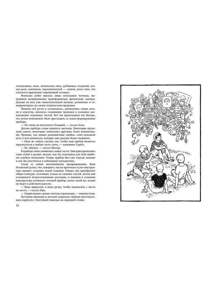 Чем занять себя четверым мальчишкам, если на каникулах одолела скука? К примеру, можно пофантазировать — что бы получилось, если бы можно было отменить силу тяжести, или сопротивление воздуха, или закон Архимеда… А ещё лучше — если бы можно было придумать такой прибор, который мог сам изменять законы физики. К чему приведёт ребят этот «мысленный эксперимент» и какие удивительные и опасные приключения их ждут, расскажет повесть Кирилла Домбровского с рисунками Генриха Валька.
