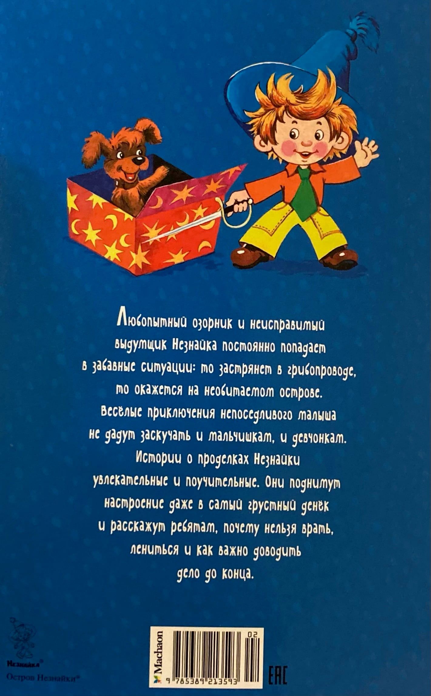 Любопытный озорник и неисправимый выдумщик Незнайка постоянно попадает в забавные ситуации: то застрянет в грибопроводе, то окажется на необитаемом острове. Весёлые приключения непоседливого малыша не дадут заскучать и мальчишкам, и девчонкам. Истории о проделках Незнайки увлекательные и поучительные. Они поднимут настроение даже в самый грустный денёк и расскажут ребятам, почему нельзя врать, лениться и как важно доводить дело до конца.