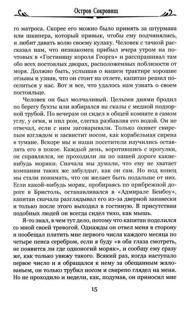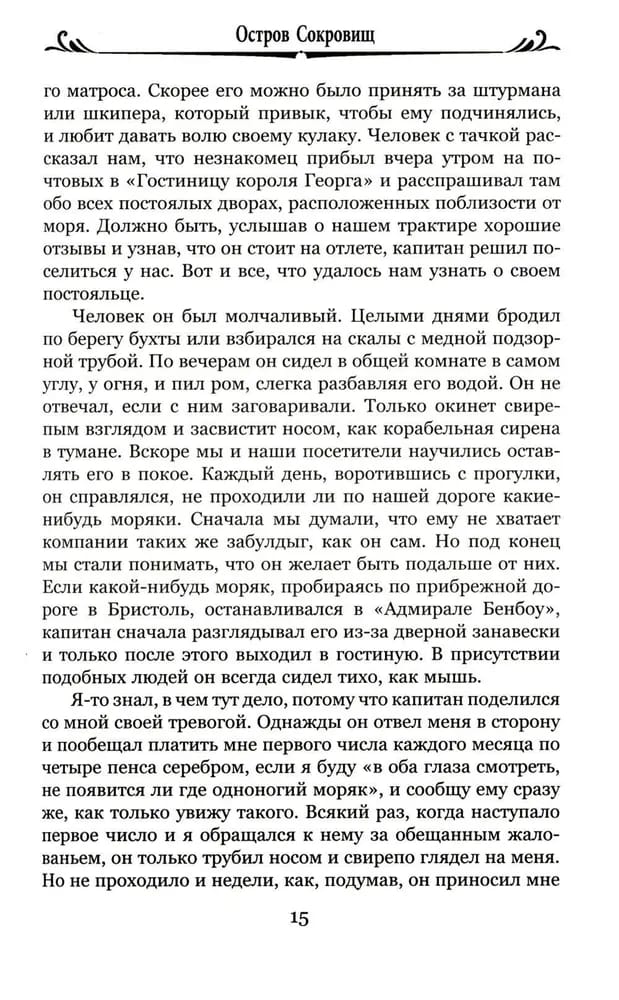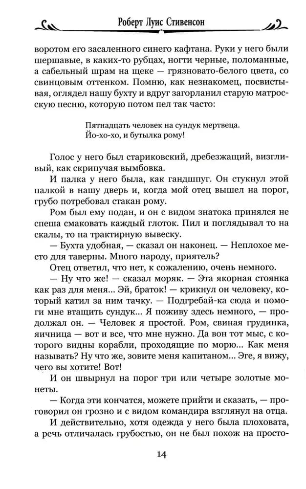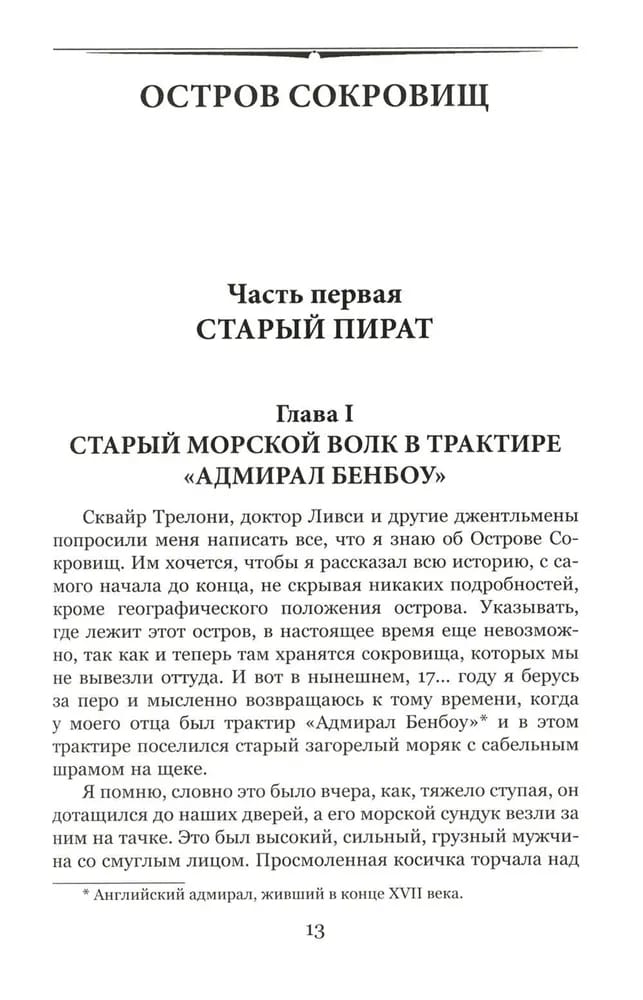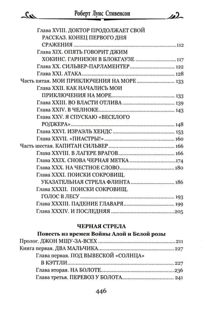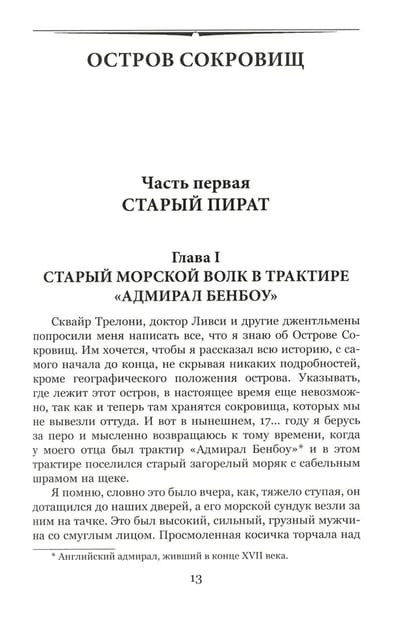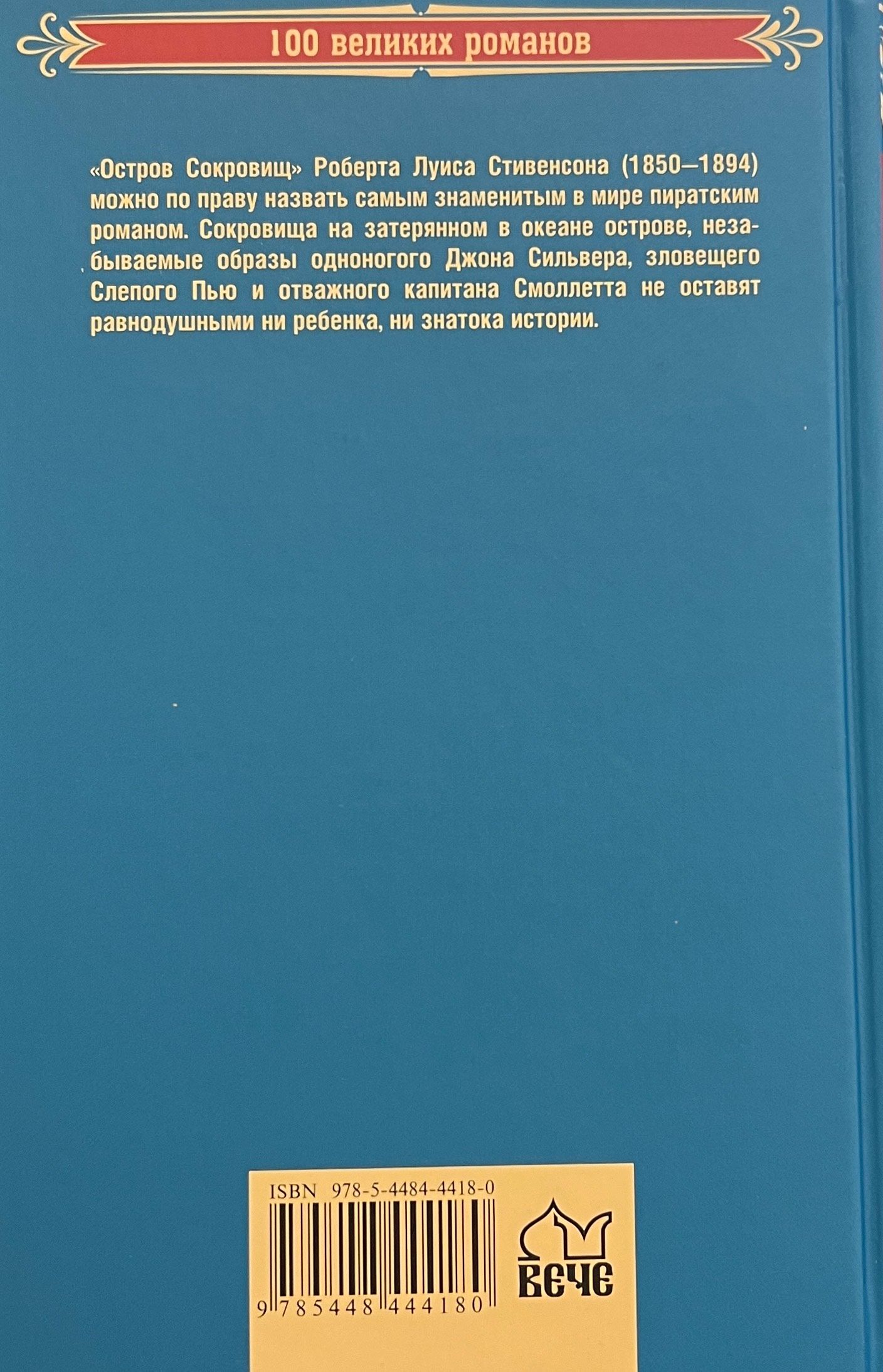 «Остров Сокровищ» Роберта Луиса Стивенсона (1850—1894) можно по праву назвать самым знаменитым в мире пиратским романом. Сокровища на затерянном в океане острове, незабываемые образы одноногого Джона Сильвера, зловещего Слепого Пью и отважного капитана Смоллетта не оставят равнодушными ни ребенка, ни знатока истории.