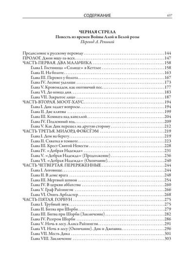 В сборник классика приключенческой литературы шотландца Р. Л. Стивенсона вошли четыре его знаменитых произведения. «Остров Сокровищ» принес писателю мировую славу. Действие романа «Черная стрела» разворачивается на фоне борьбы за власть в Англии XV в. «Похищенный» стал образцом приключенческого романа; продолжением этой истории является роман «Катриона». Сборник проиллюстрирован рисунками двух братьев — талантливых британских художников Генри Мэтью Брока и Чарльза Эдмунда Брока.