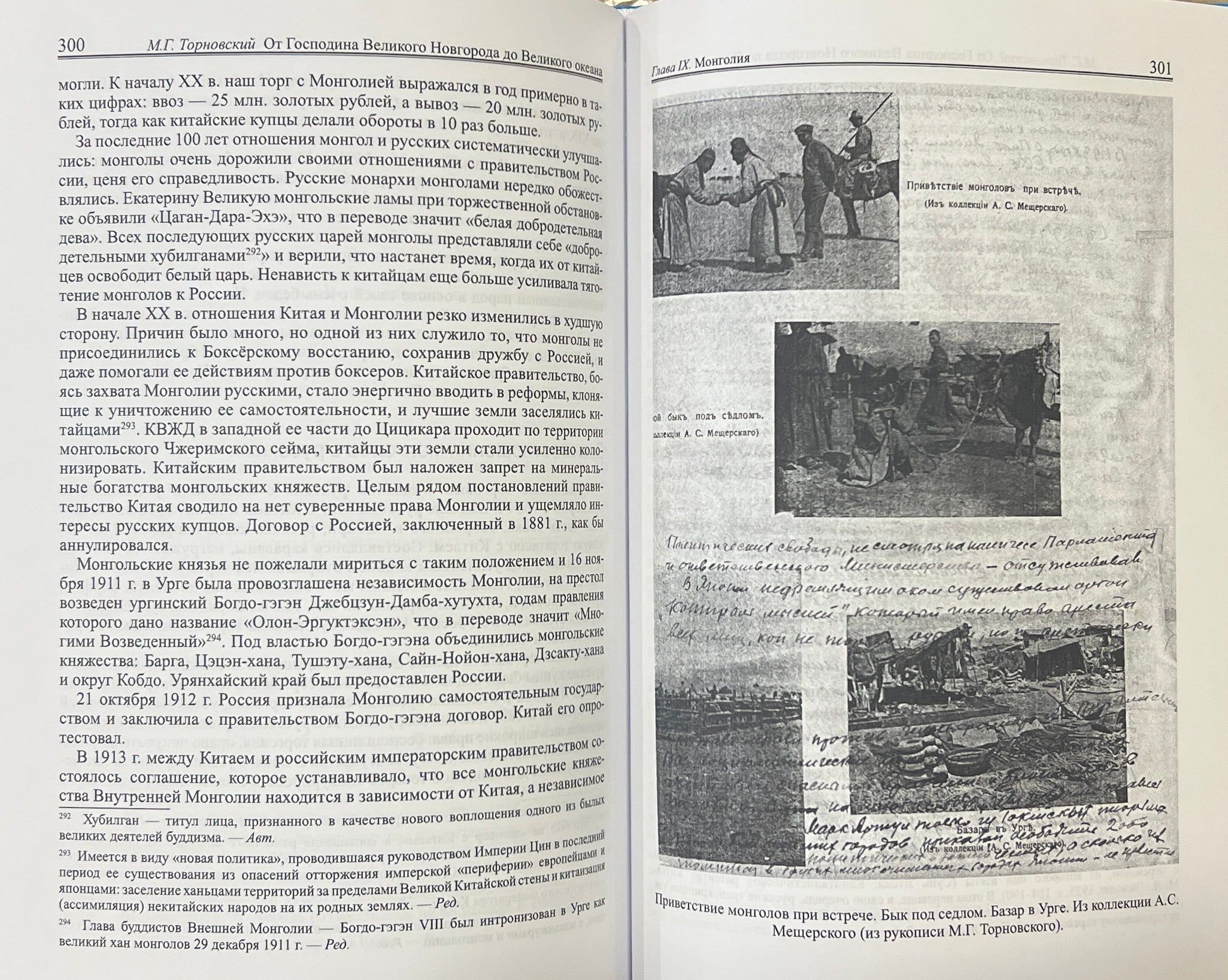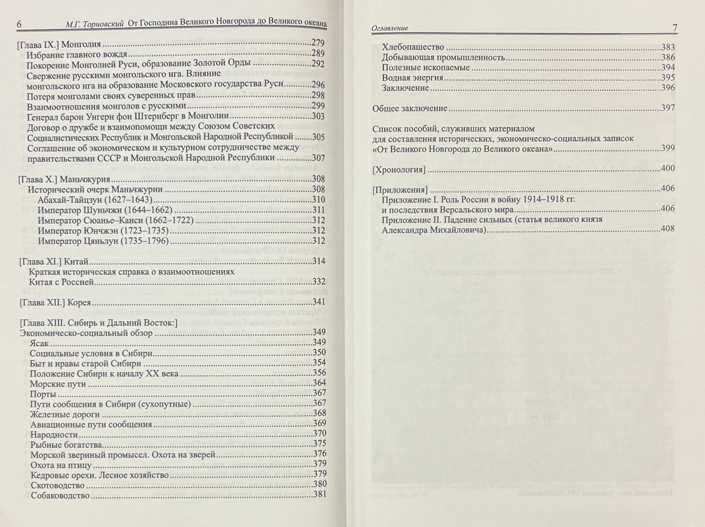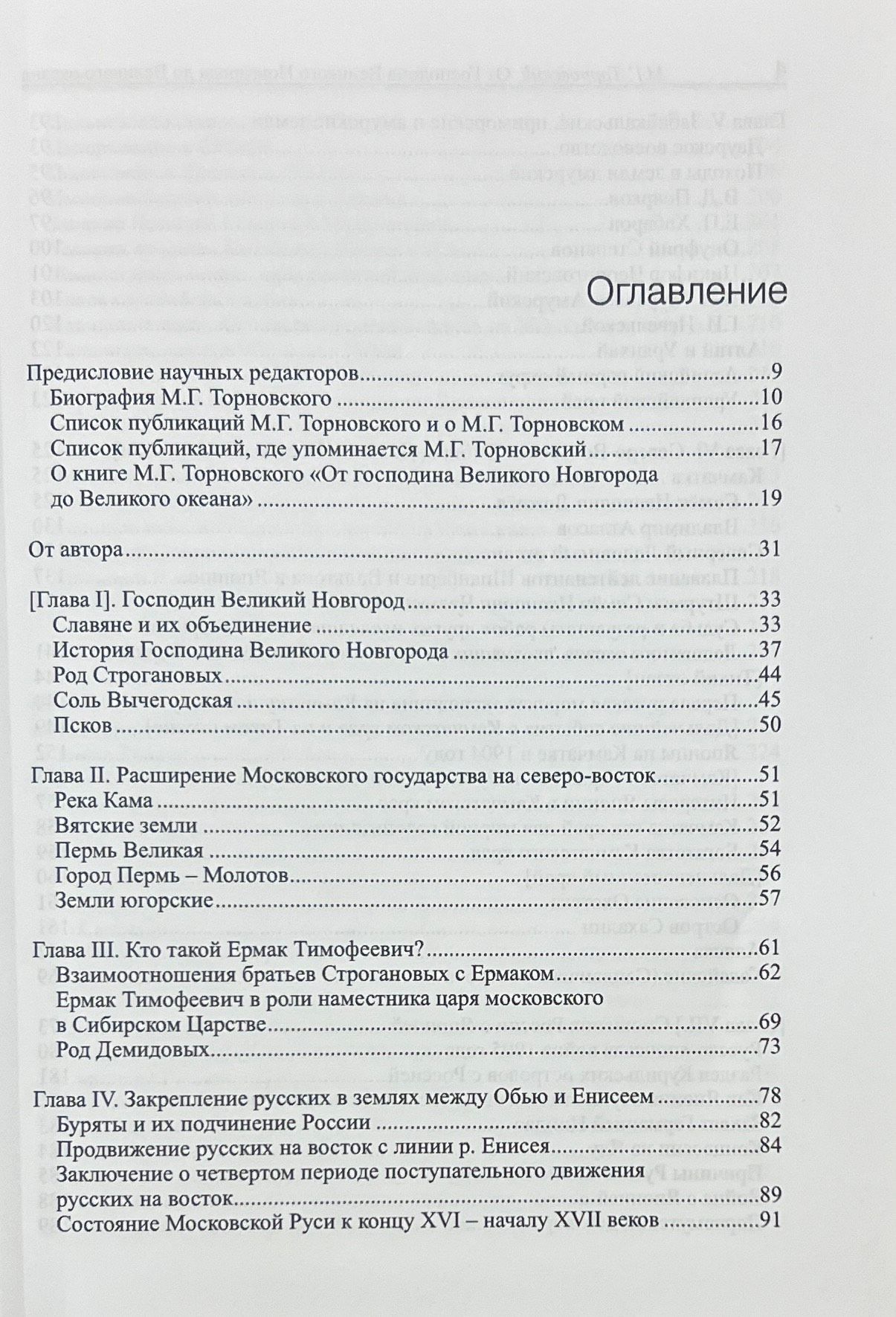Михаил Георгиевич Торновский (1882–1963), известный читателям по мемуарам о его службе в Азиатской конной дивизии барона Р.Ф. Унгерна, много лет писал книгу о развитии Российского государства на восток, имевшем важные цивилизационные и геополитические последствия. Эта рукопись, известная уже довольно давно по публикациях о М.Г. Торновском, теперь предлагается читателям. Это произведение занимает достойное место в ряду известных книг о первопроходцах Азии. Данная книга интересна как обзор развития Азиатской России, сделанный очевидцем ряда важнейших событий первой половины ХХ в., изменивших политическую карту Евразии. Личные наблюдения, сопоставления и оценки автора представляют интерес не только для историков, но и для всех, кто интересуется историей России и Евразии в целом. - Рукопись книги М. Г. Торновского «От господина Великого Новгорода до Великого океана» (историко-социально-экономические записки) содержится в материалах архивно-следственного дела М.Г. Торновского, находящегося на архивном хранении в Государственном краевом бюджетном учреждении «Пермский государственный архив социально-политической истории» (Ф.641/1 Оп. 1. Д. 9027), и публикуется впервые на основании разрешения наследника (внучки) автора Татьяны Алексеевны Гайнутдиновой.