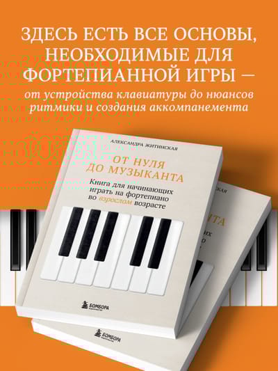 Автор книги Саша Житинская, выпускница Санкт-Петербургской консерватории, показывает, что игра на фортепиано — это навык, которым можно овладеть и во взрослом возрасте. Нужно только иметь правильный настрой, не терять мотивацию и по-настоящему любить музыку. Книга поможет вам создать реалистичный план обучения и укажет те ориентиры, которые позволят справиться с трудностями, возникающими на пути к красивой и свободной игре на инструменте.