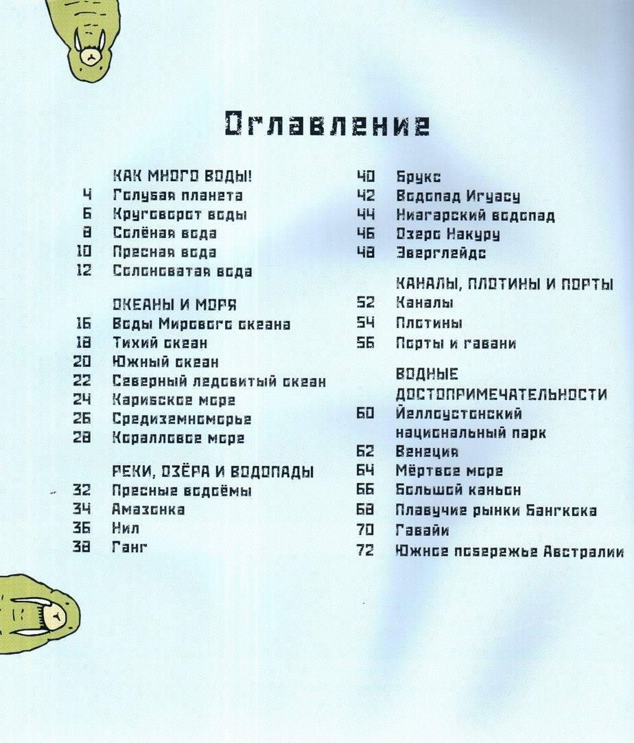 В этой познавательной книге с великолепными фотографиями собраны увлекательные сведения о водном мире нашей планеты. Что такое круговорот воды в природе? Чем отличается вода в реках и в океанах? Здесь вы найдёте истории о самых необычных и живописных реках и озёрах, о морях и океанах, об искусственных водоёмах, дамбах и гидроэлектростанциях. А еще в книге много занимательных заданий и весёлых авторских рисунков, благодаря которым новые знания легче усваиваются.