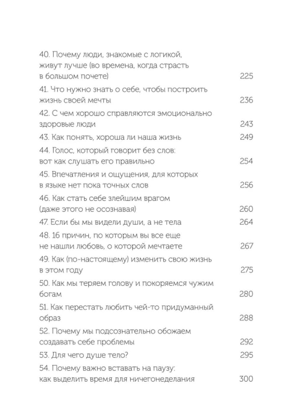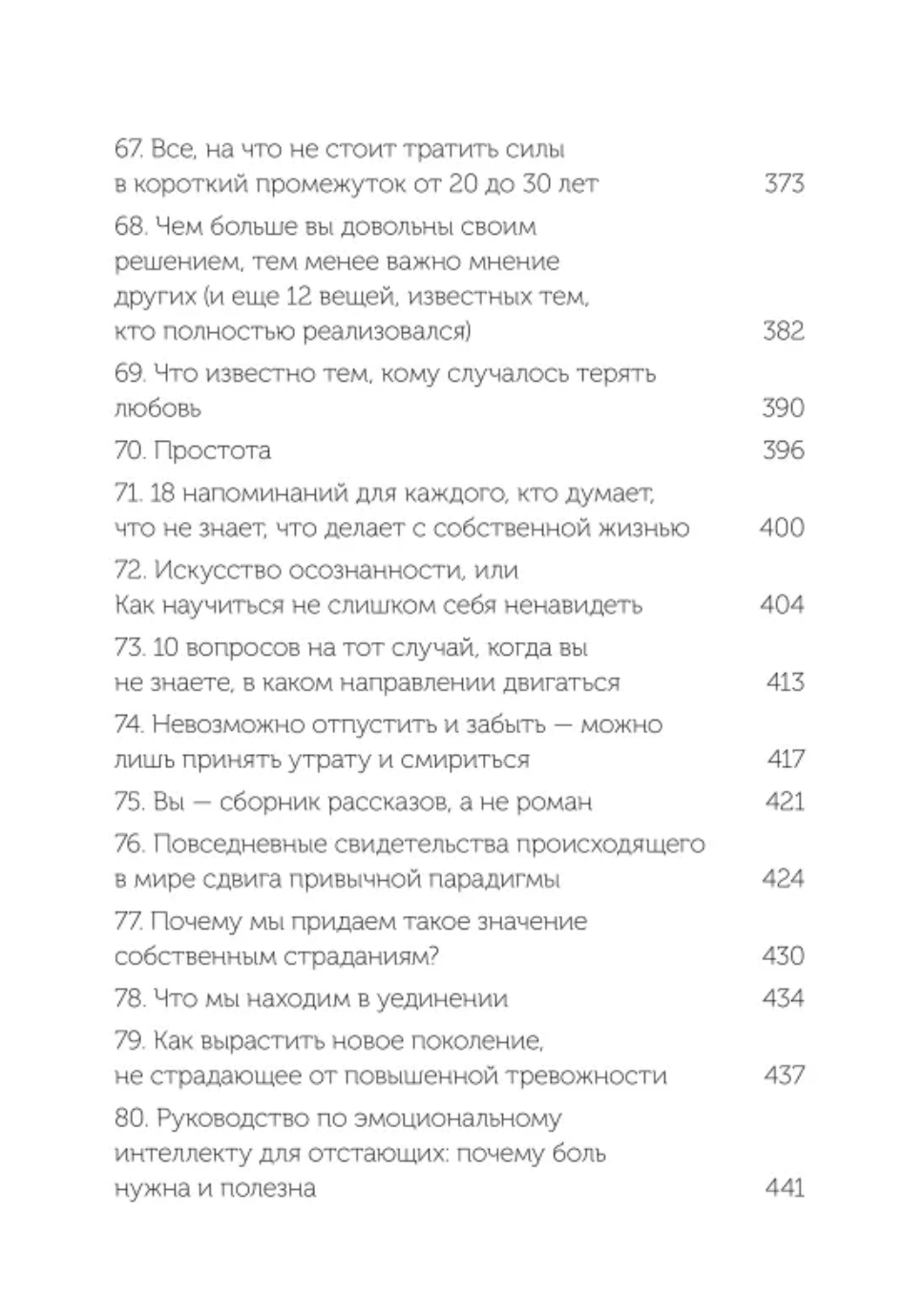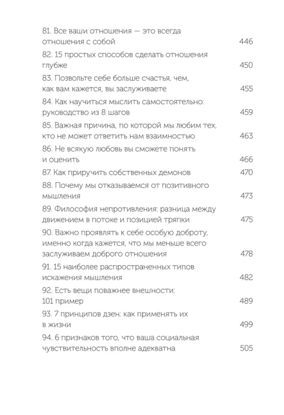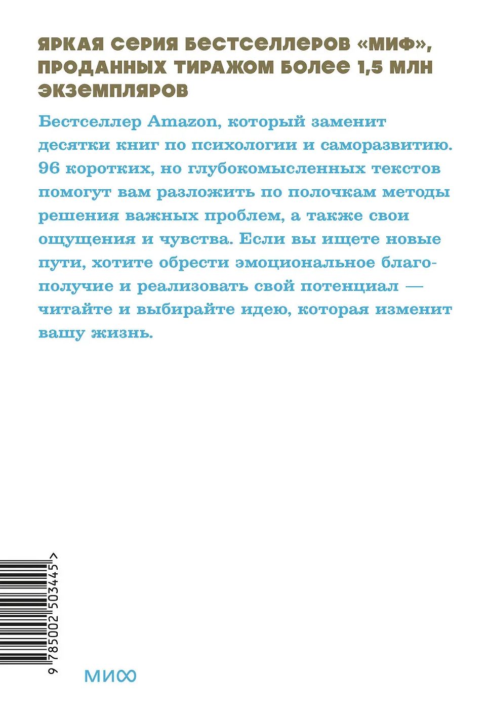 Эти и еще 96 коротких, но глубокомысленных текстов помогут вам разложить по полочкам методы решения важных проблем, а также свои ощущения и чувства. Если вы ищете новые пути, хотите обрести эмоциональное благополучие и реализовать свой потенциал — читайте и выбирайте идею, которая изменит вашу жизнь.