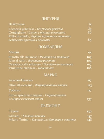 Перед вами книга о многообразии и своеобразии гастрономических традиций Италии. Двадцать пять эссе об итальянских городах и их кулинарных особенностях, дополненных продуманными рецептами, которые легко реализовать на собственной кухне. Показывая Италию сквозь призму региональных кулинарных традиций, автор проводит читателя по всей стране, уделяя внимание не только популярным Риму, Флоренции или Венеции, но и менее известным локациям, и позволяет увидеть Италию глазами путешественника, а не туриста. Благодаря великолепным иллюстрациям книга станет прекрасным подарком тому, кто уже знаком со страной или только мечтает открыть для себя Италию.