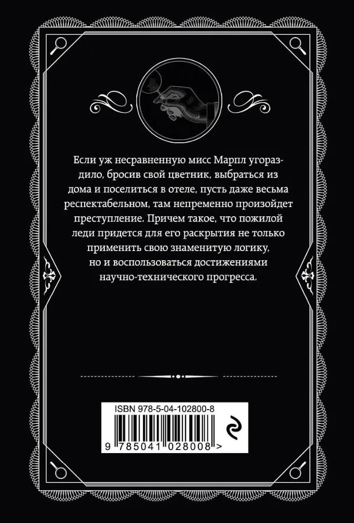 Если уж несравненную мисс Марпл угораздило, бросив свой цветник, выбраться из дома и поселиться в отеле, пусть даже весьма респектабельном, там непременно произойдет преступление. Причем такое, что пожилой леди придется для раскрытия не только применить свою знаменитую логику, но и воспользоваться достижениями научно-технического прогресса.